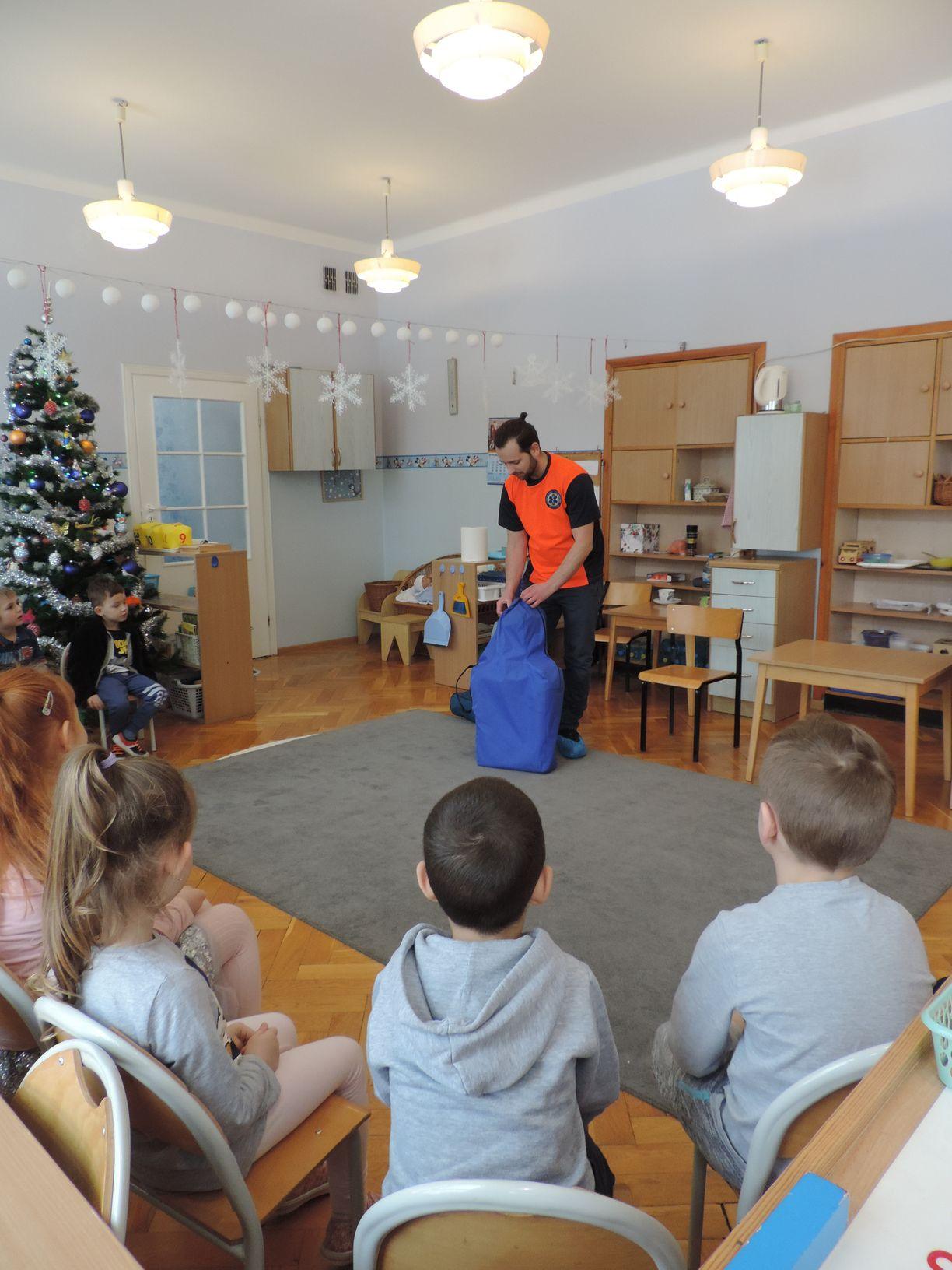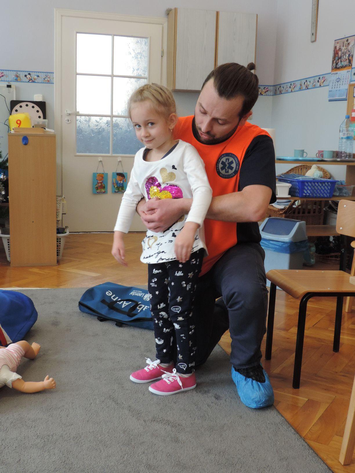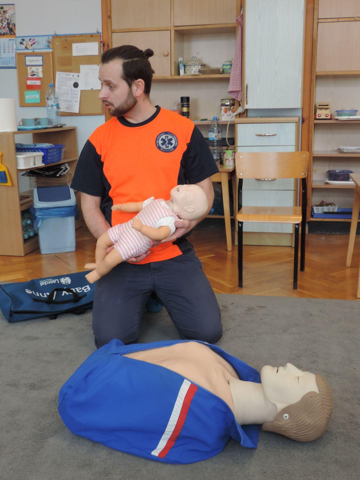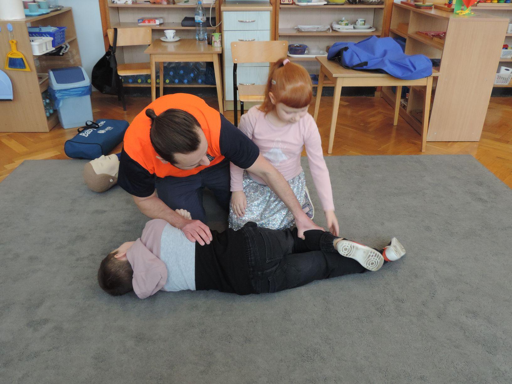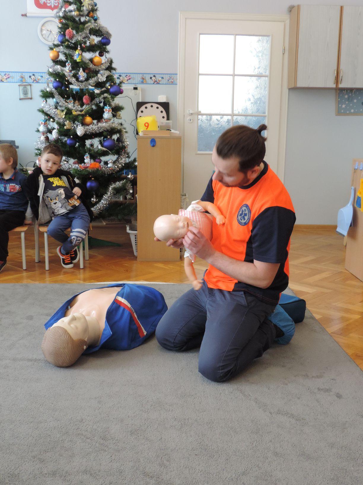 Coraz częściej słyszy się o odpowiedzialnych postawach dzieci w sytuacjach zagrożeń zdrowia innych osób. To efekt edukacji w zakresie niesienia pomocy. Istnieje powszechne przekonanie o potrzebie stwarzania sytuacji, w których najmłodsi mogą poznać zagadnienia związane z ratownictwem. Jeśli treści teoretyczne przekazywane przez dorosłych zostają wzbogacone o pokaz, dzieci łatwiej je zapamiętują. Stąd spotkanie dzieci z grupy Niebieskiej z ratownikiem medycznym, panem Arturem Kitlińskim.