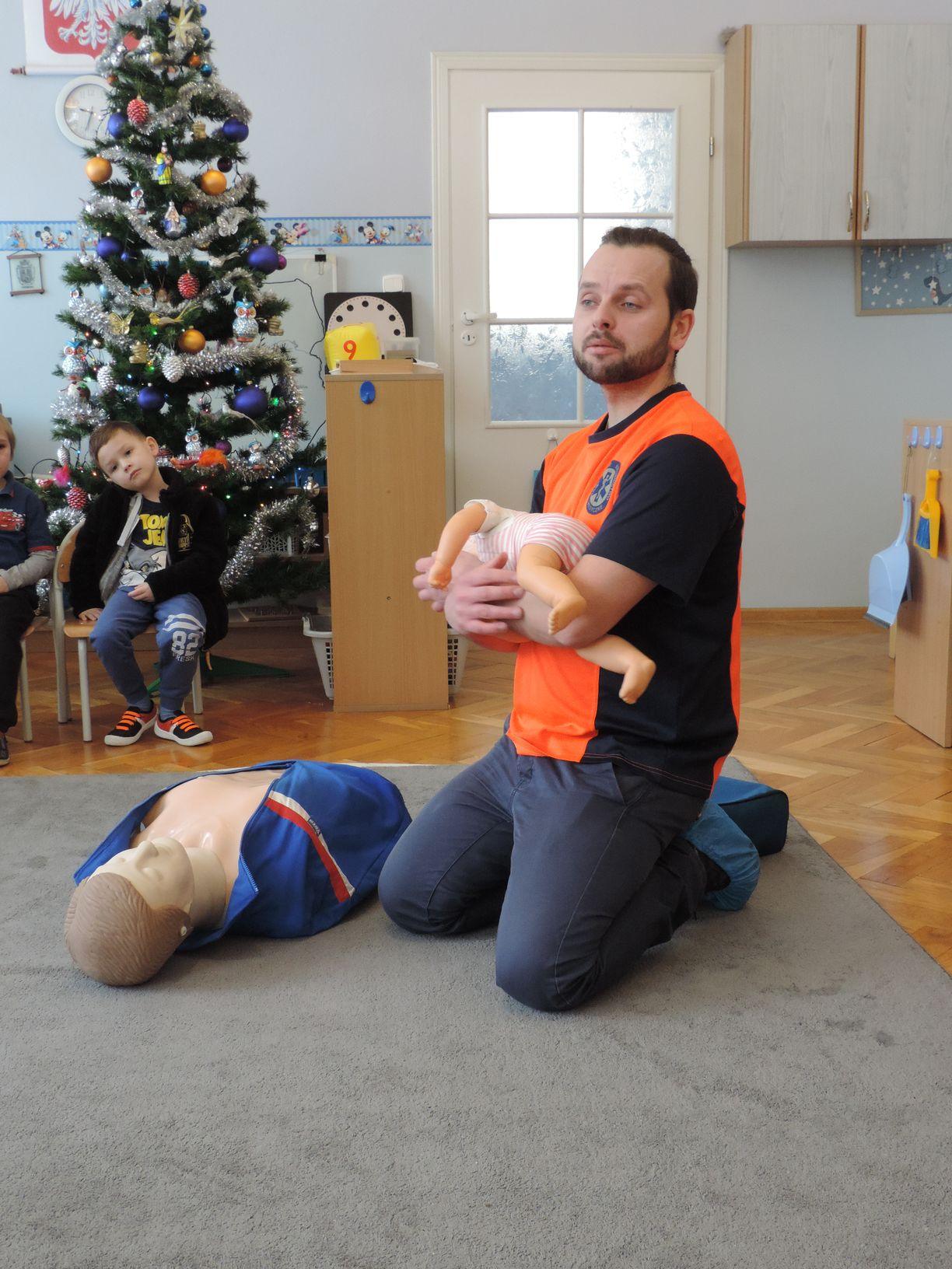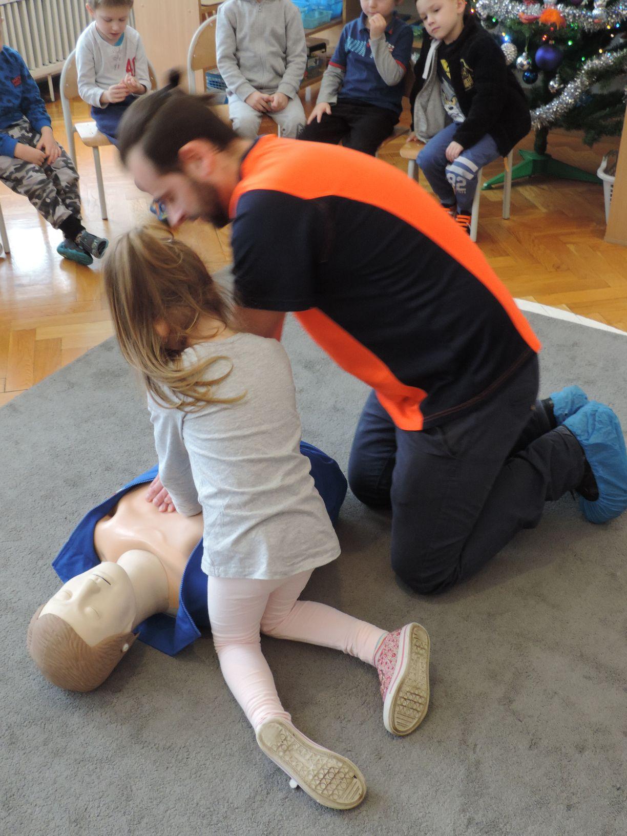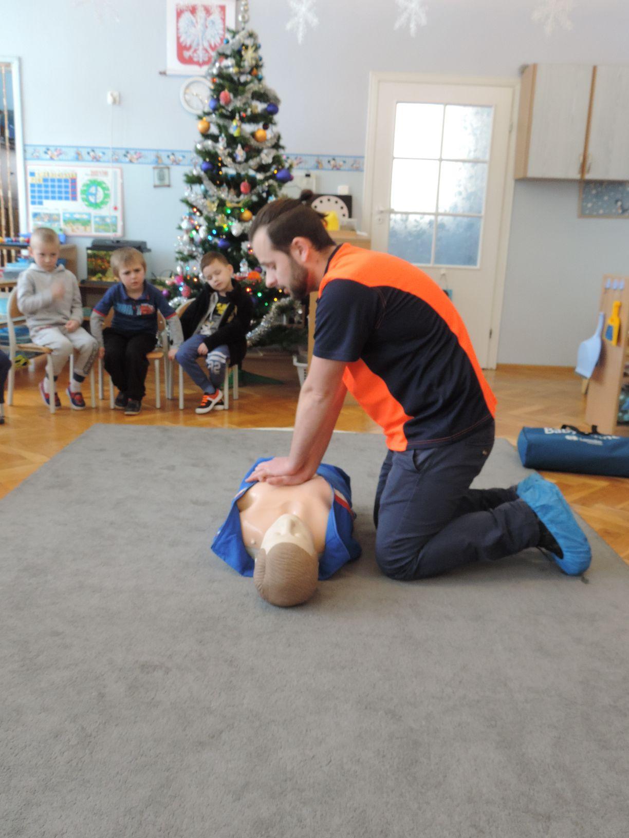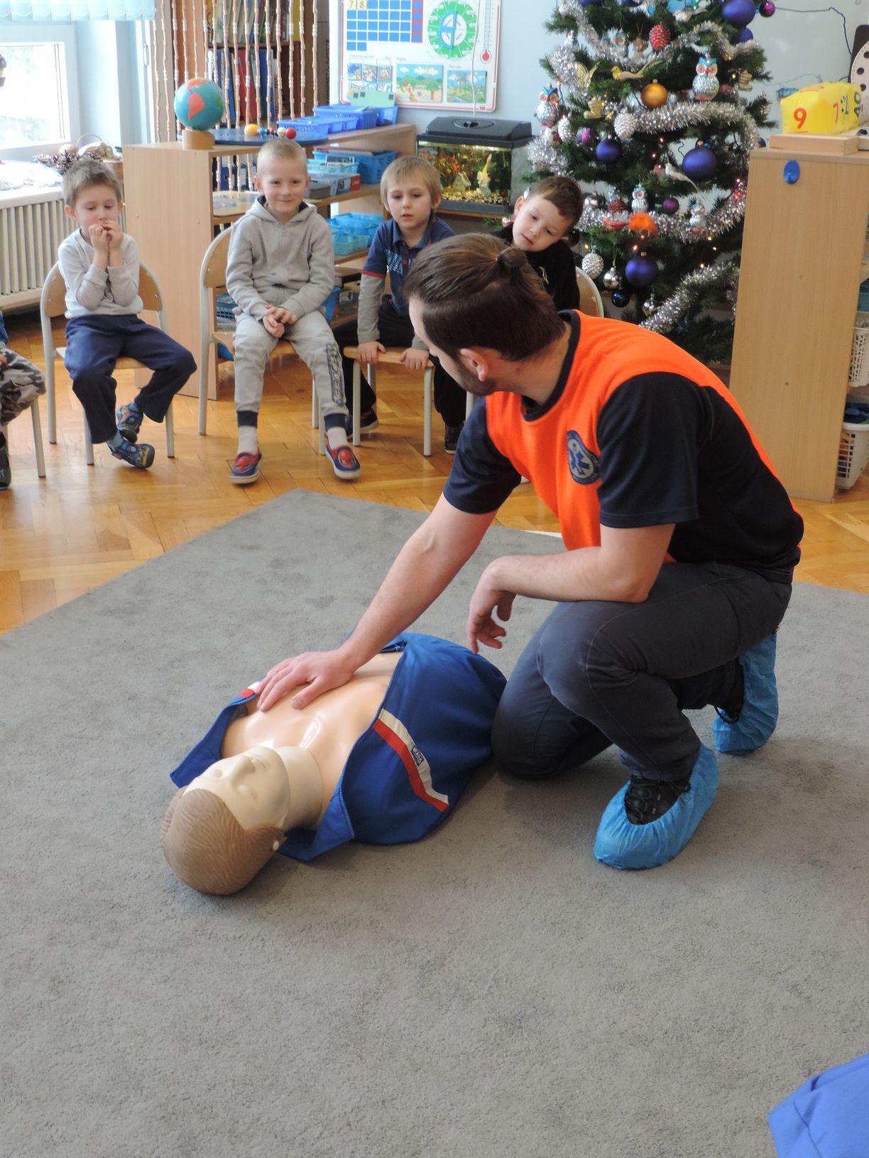 Podczas spotkania przedszkolaki zdobyły wiedzę na temat udzielania pierwszej pomocy. Dziś już wiedzą, jak zbadać oddech, przeprowadzić resuscytację. Zapamiętały, że należy na przemian wykonać trzydzieści uciśnięć klatki piersiowej i dwa wdechy. Samodzielnie je wykonały, bo pan Artur przyniósł ze sobą fantoma. Wiedzą też, że między ratowaniem dorosłej osoby i dziecka jest znaczna różnica. Potrafią o tym opowiedzieć. Potrafią ułożyć osobę poszkodowaną w pozycji bezpiecznej. Znają też sposoby udzielania pomocy w przypadku zakrztuszeń. Wiedzą do czego służy chusta, którą pan Artur ma w swoim ratowniczym wyposażeniu.