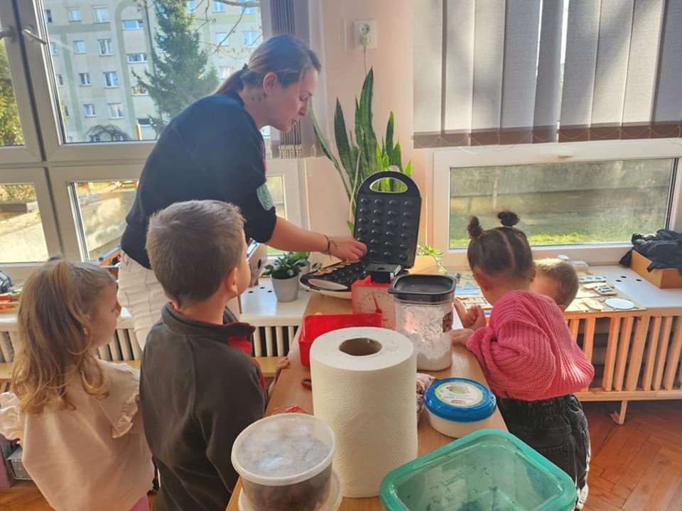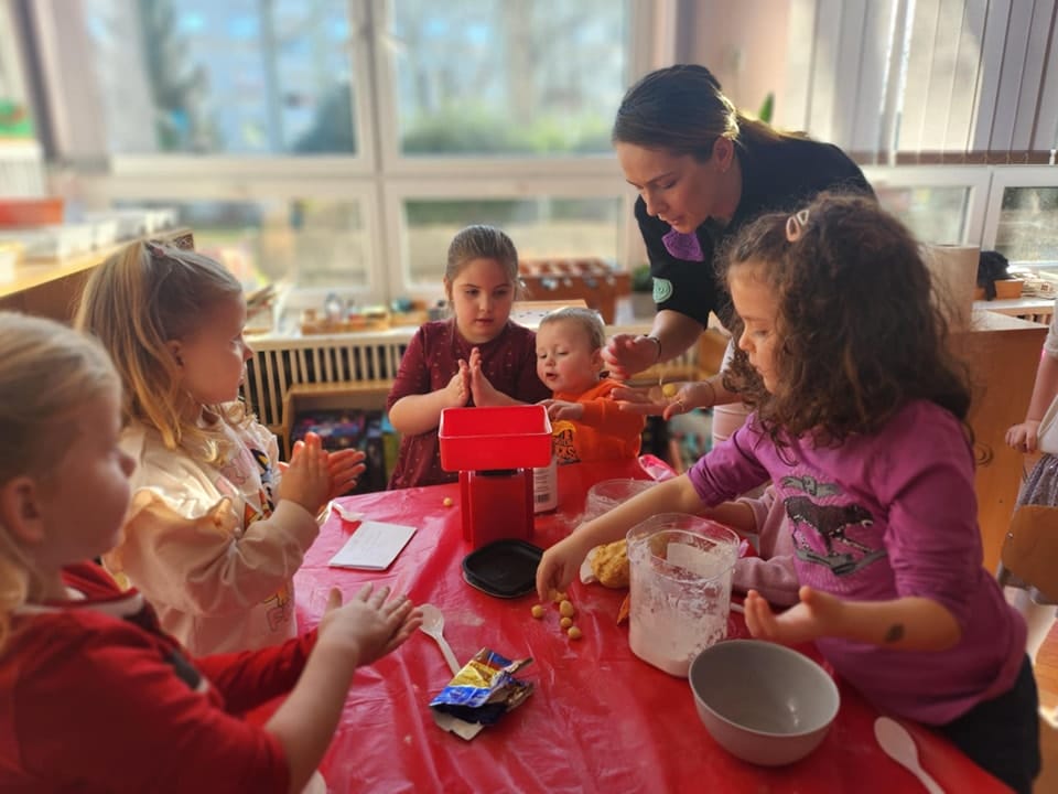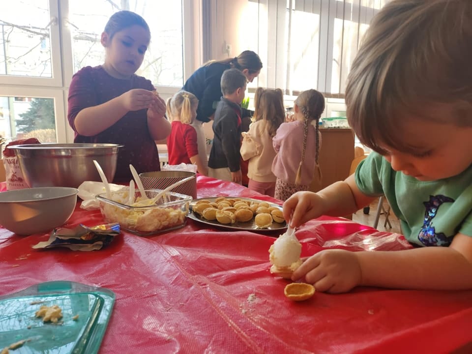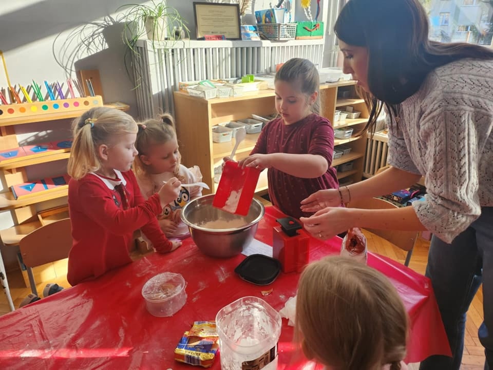 Dzisiaj sala grupy Czerwonej zamieniła się w prawdziwą cukiernię. A wszystko za sprawą Pani Ewy – mamusi Zuzi.