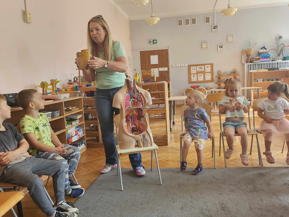 W piątek mieliśmy niezwykłą przyjemność gościć w Grupie Czerwonej Panią Joannę, babcię naszego Antosia. Pani Joanna, która jest nauczycielką biologii przeprowadziła wspaniałą lekcje o anatomii człowieka dla naszych przedszkolaków, w której wszyscy bardzo chętnie wzięli udział. Dzieci miały okazję zobaczyć jak wyglądają narządy wewnętrzne człowieka, poznać ich nazwy, a także funkcję. Serdecznie dziękujemy Pani Joannie za przybycie i przeprowadzenie tak ciekawej lekcji.