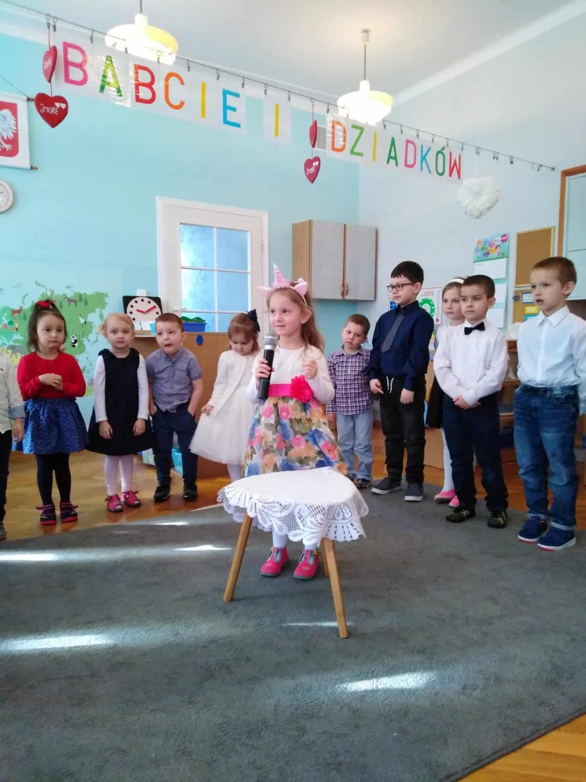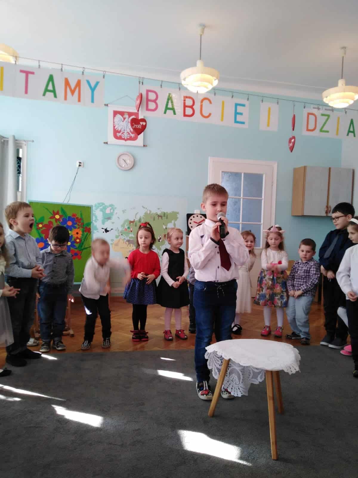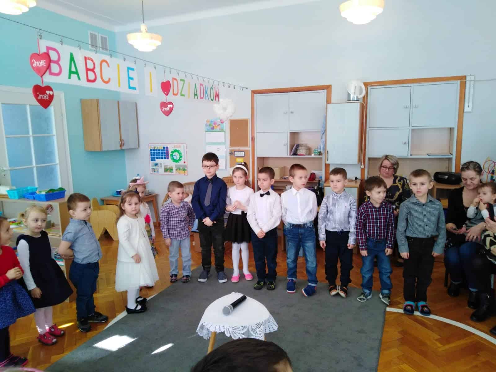 W dniu 7 lutego 2020 obchodziliśmy święto dnia Babci i Dziadka w grupie niebieskiej.W tym roku przywitaliśmy naszych gości piosenką:”Hej Sokoły”,którą dzieci zagrały na instrumentach perkusyjnych.Każdy wnuczek i każda wnuczka dla kochanej Babci i kochanego Dziadka recytowali wiersze.Nie zabrakło śpiewu:”Sto lat” oraz nowoczesnych piosenek.Uwieńczeniem naszego występu był taniec pt:”Cicha woda”,wręczenie prezentów oraz wspólny poczęstunek. Rodzice przygotowali mnóstwo słodkości,za co bardzo dziękujemy.Naszym wspaniałym gościom życzymy wiele lat zdrowia i wszelkiej pomyślności oraz dziękujemy serdecznie za przybycie.
