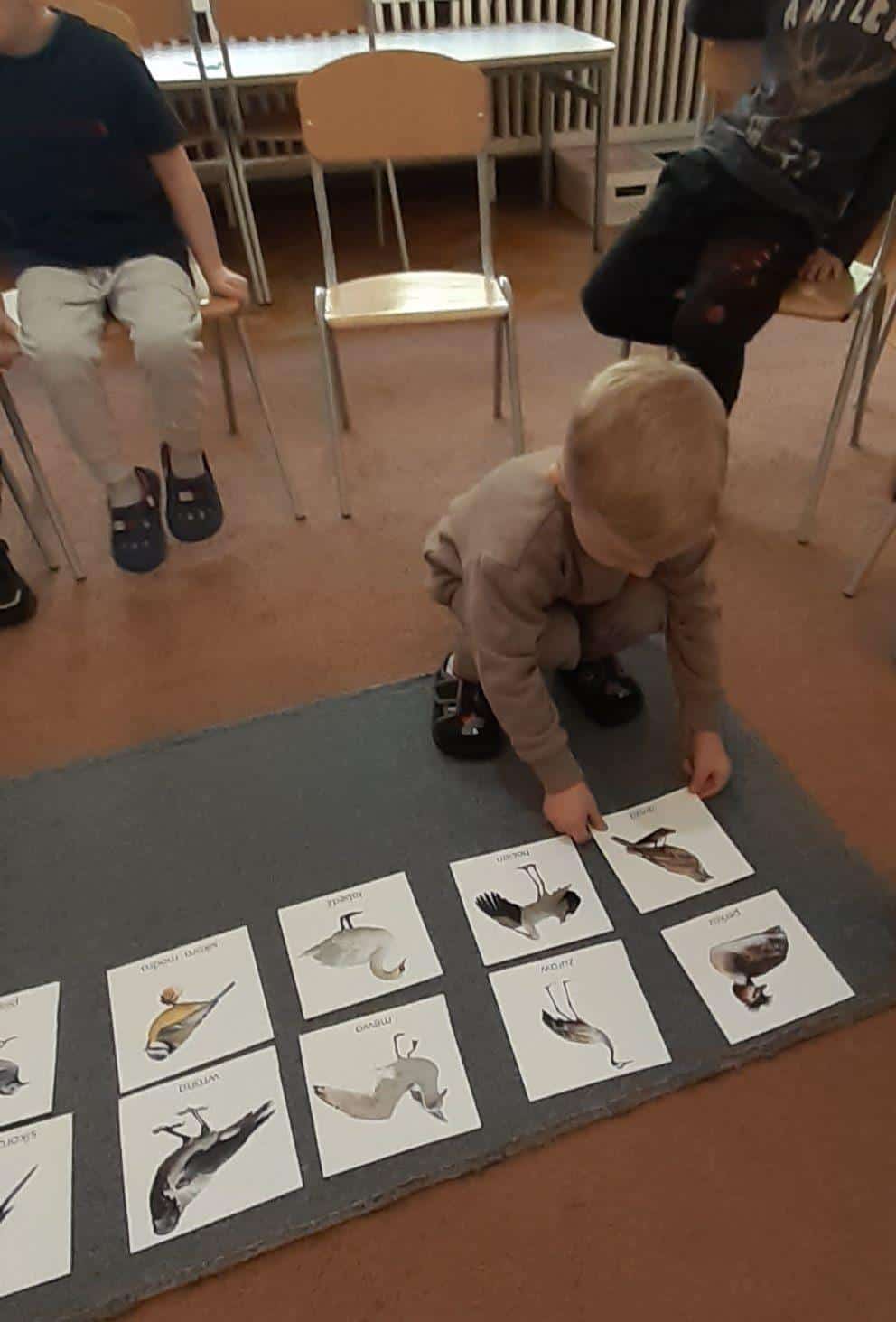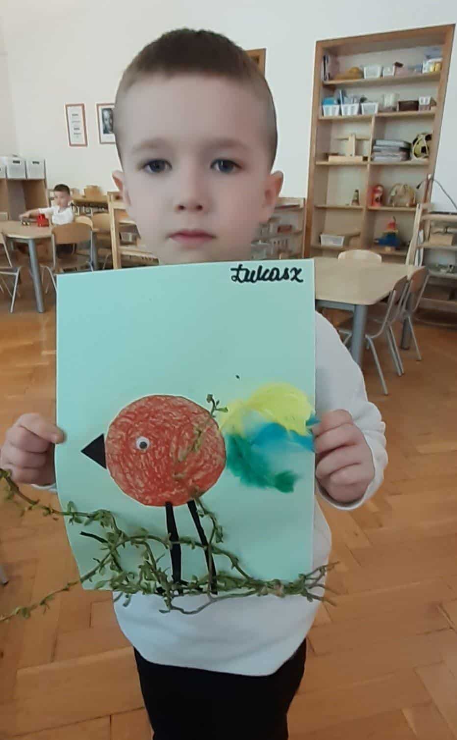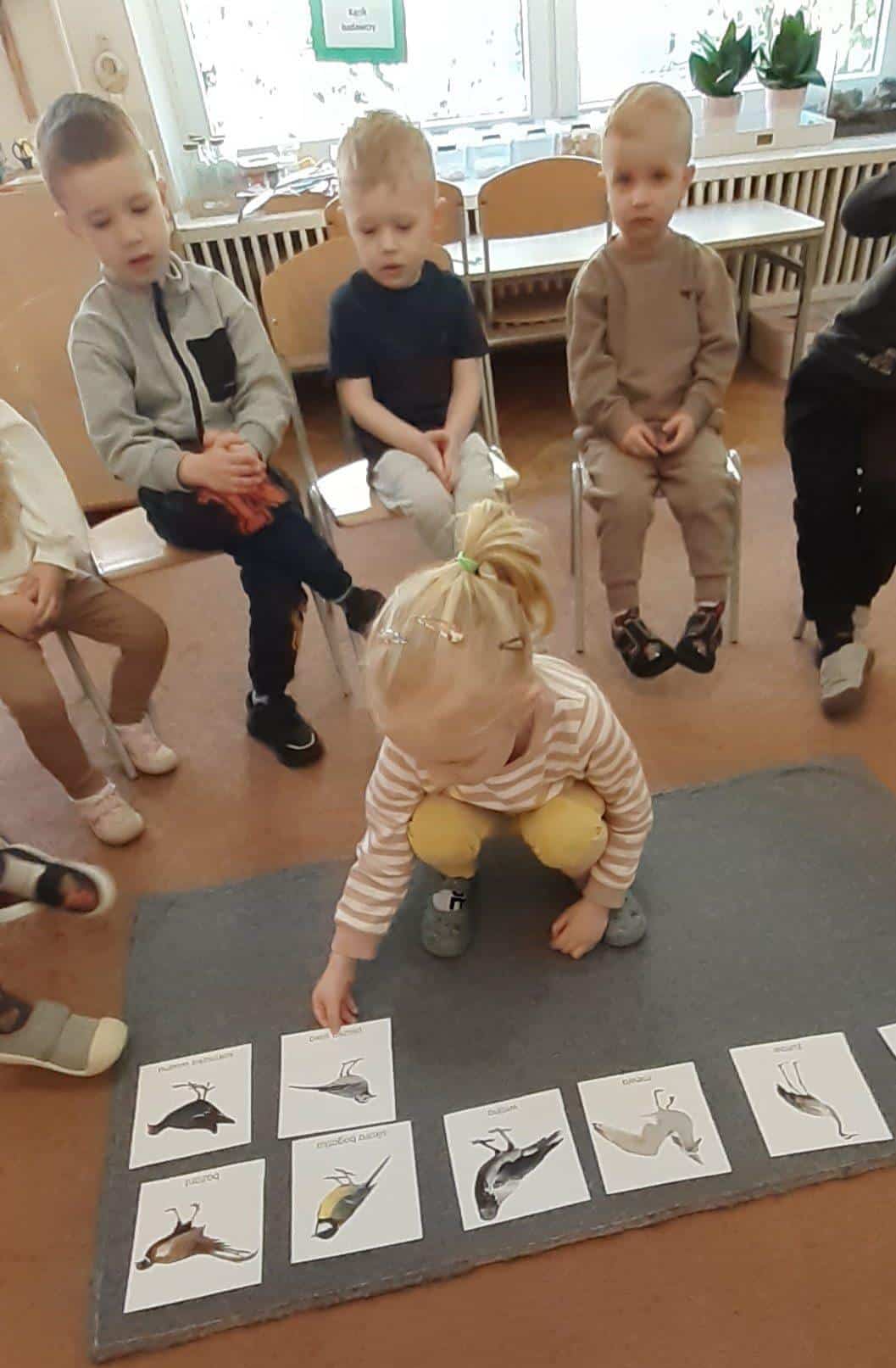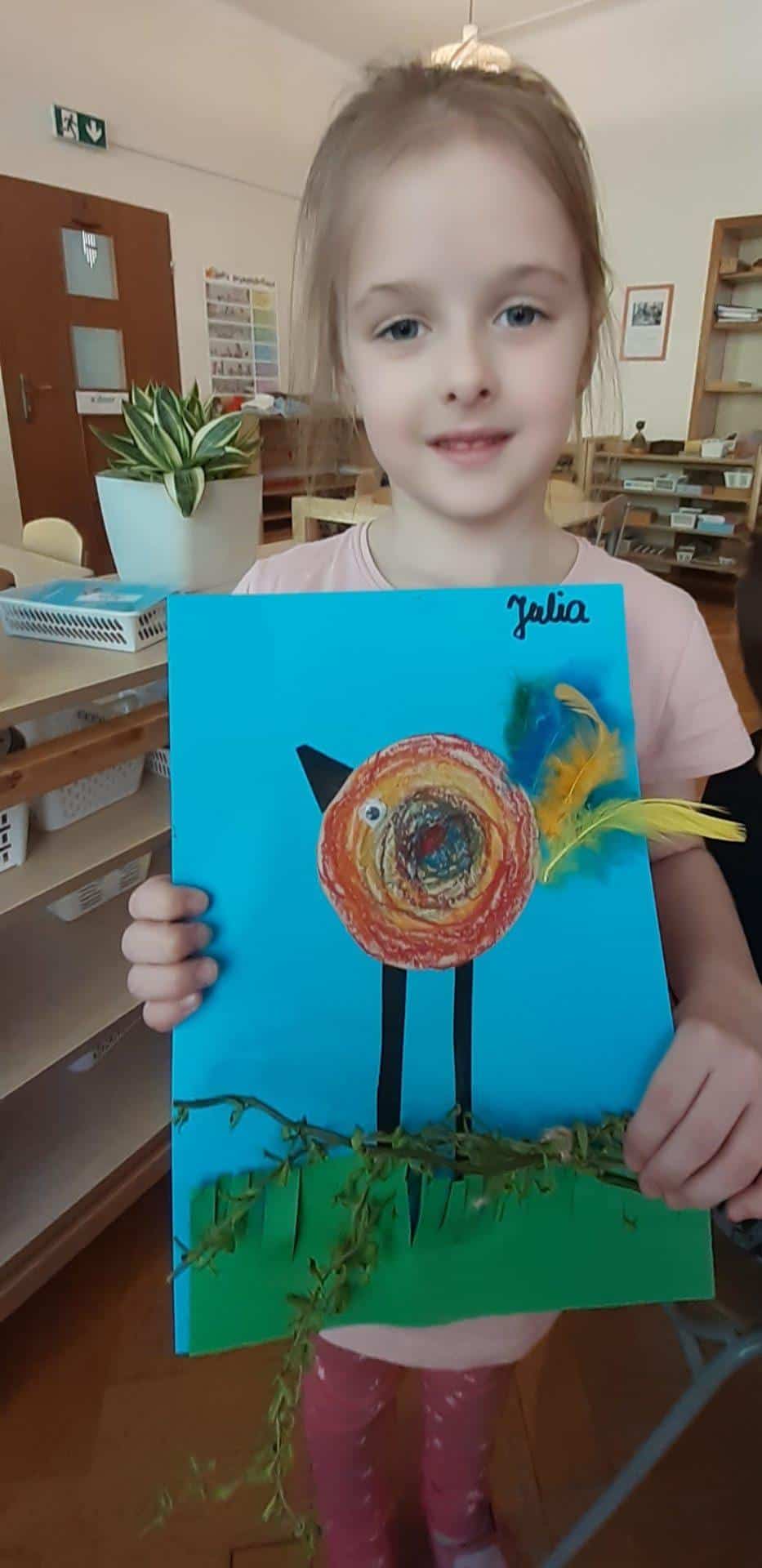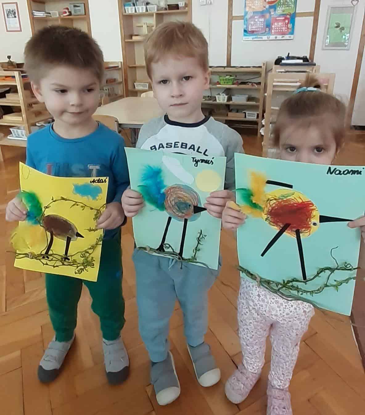 Gromadzenie wiedzy o ptakach przylatujących na wiosnę, o okresie godowym, opiece nad potomstwem i nauce latania. Budowa gniazda i oglądanie kolekcji autentycznych gniazd różnych gatunków ptaków. Ciekawostki o ptasich jajach i aktywność plastyczna „Siedzi ptaszek na gałązce…” inspirowana wierszem i doświadczeniami dzieci z ornitologicznych obserwacji.