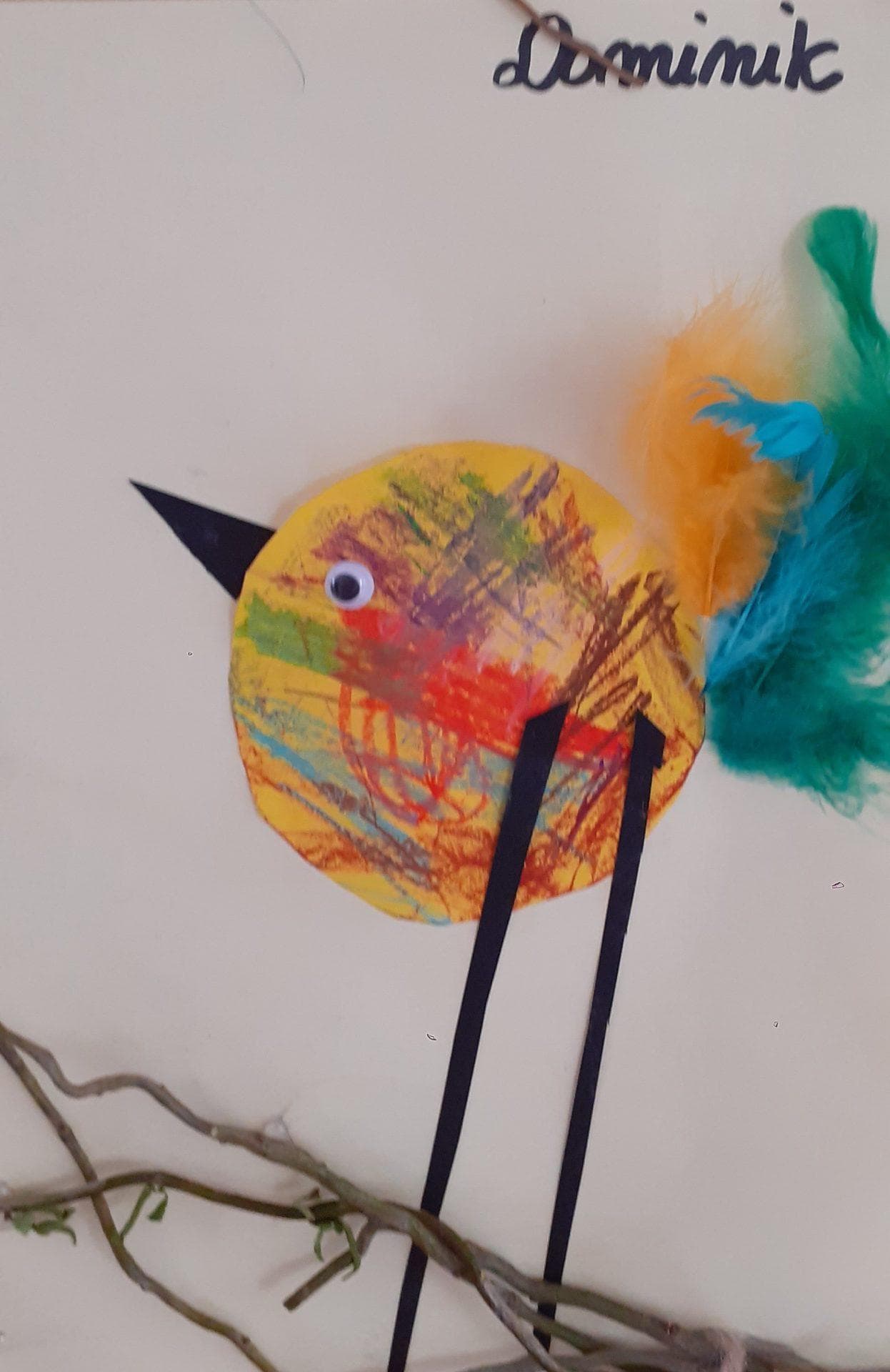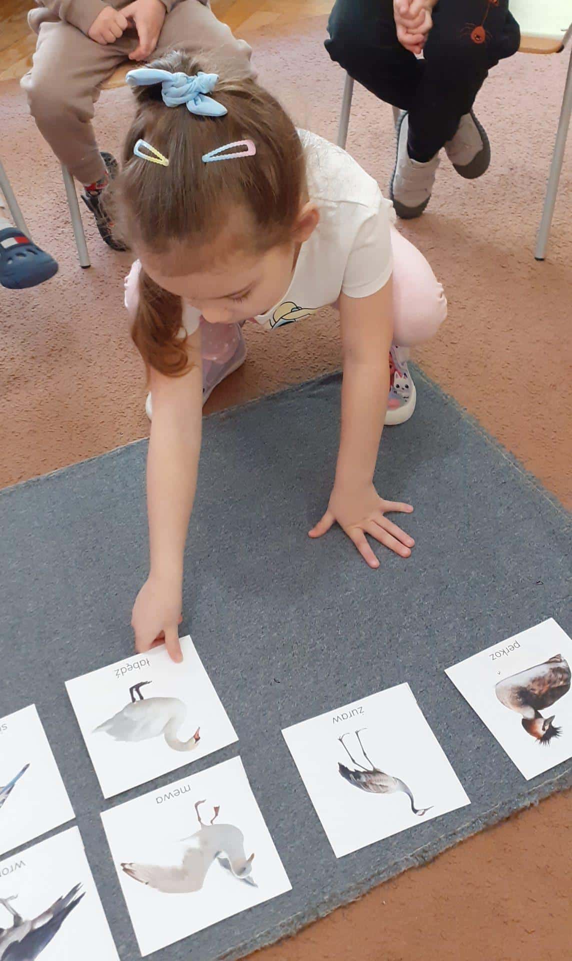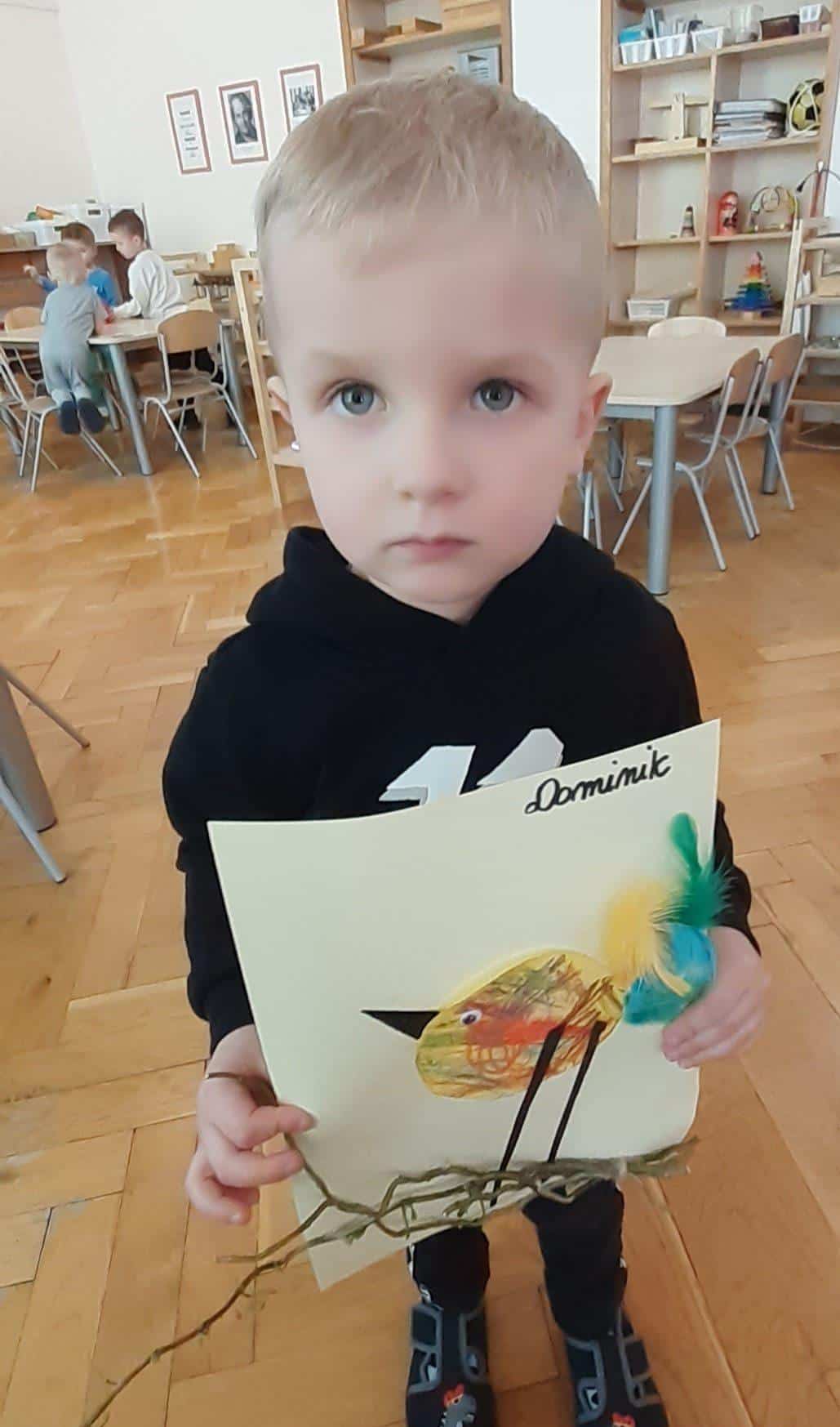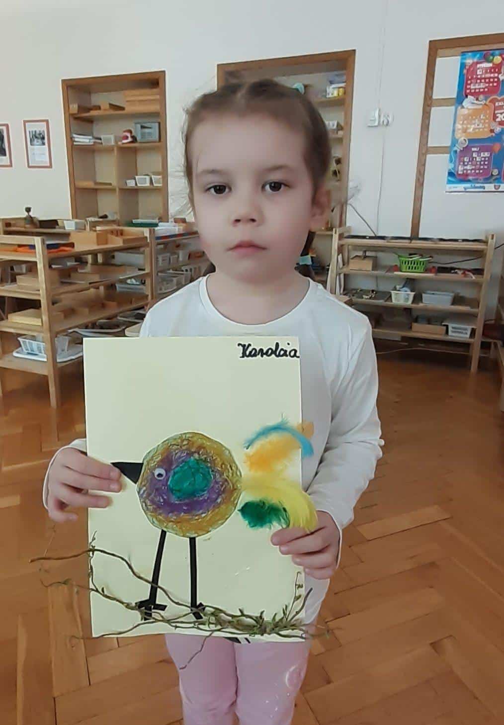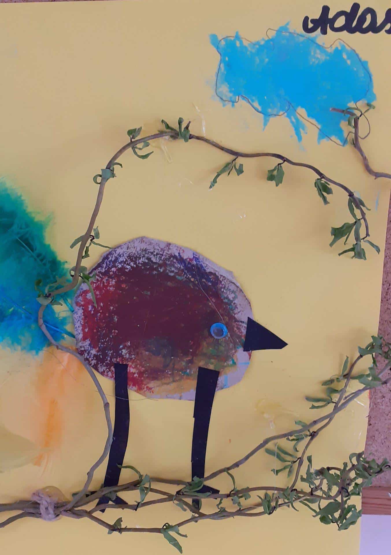 Gromadzenie wiedzy o ptakach przylatujących na wiosnę, o okresie godowym, opiece nad potomstwem i nauce latania. Budowa gniazda i oglądanie kolekcji autentycznych gniazd różnych gatunków ptaków. Ciekawostki o ptasich jajach i aktywność plastyczna „Siedzi ptaszek na gałązce…” inspirowana wierszem i doświadczeniami dzieci z ornitologicznych obserwacji.