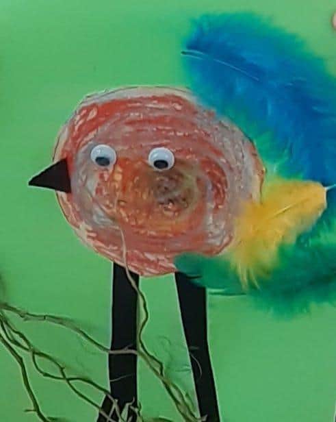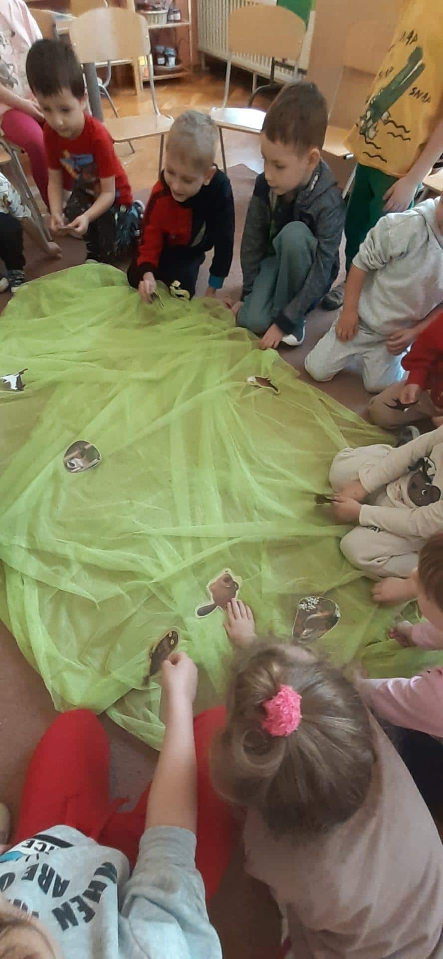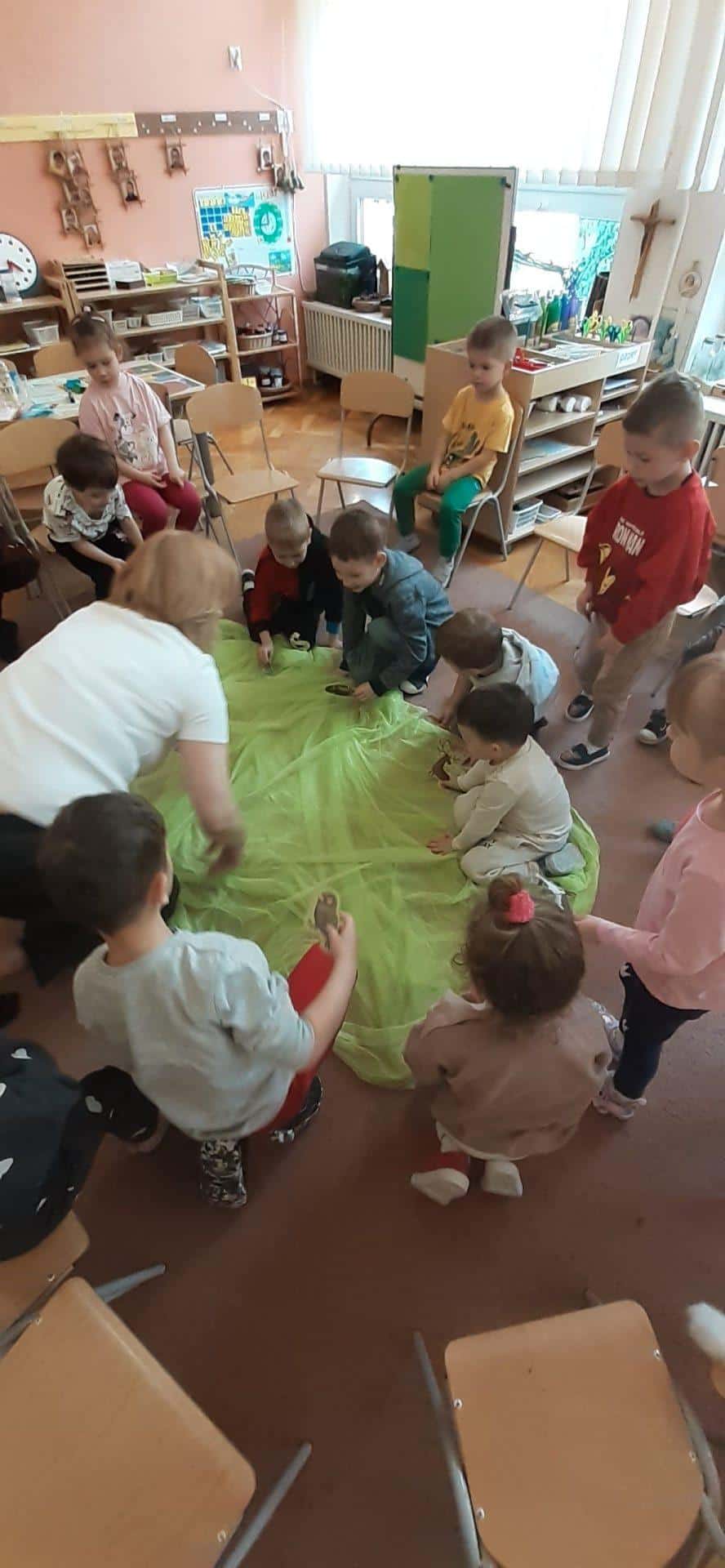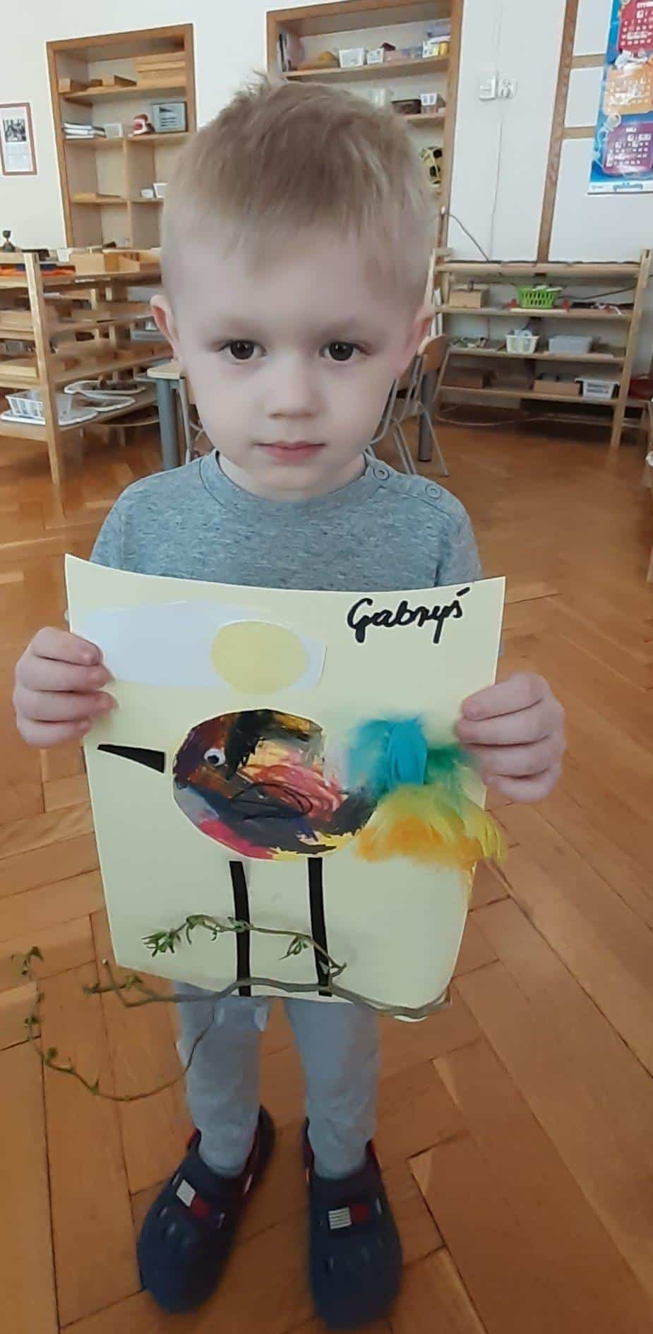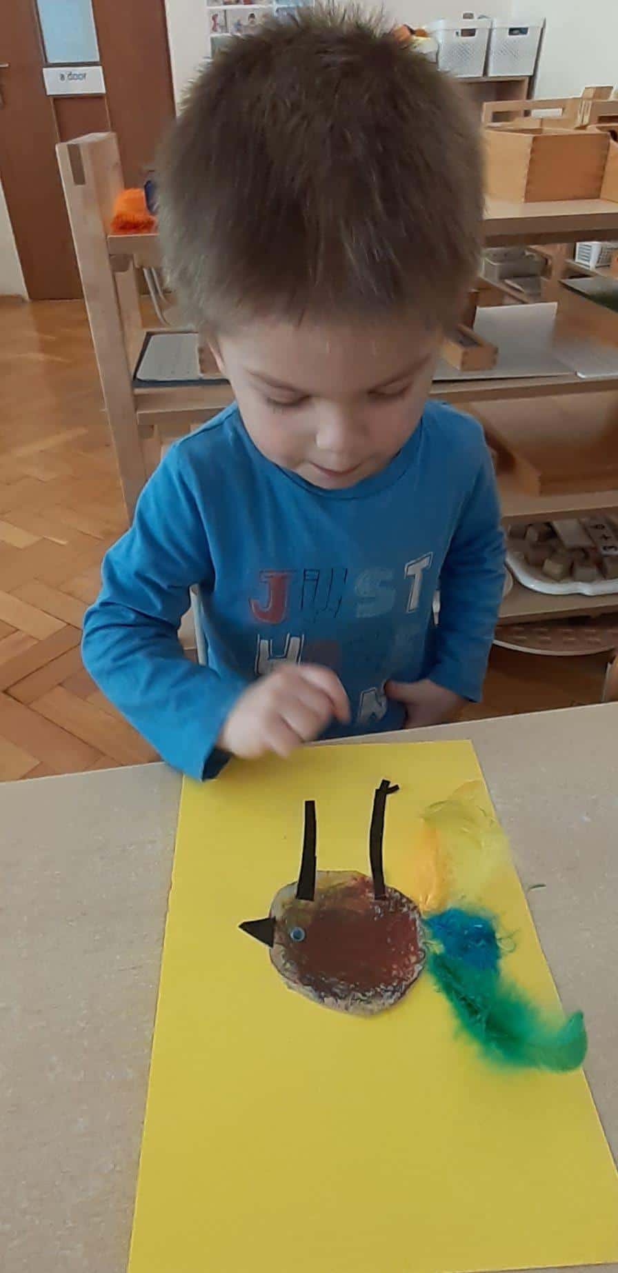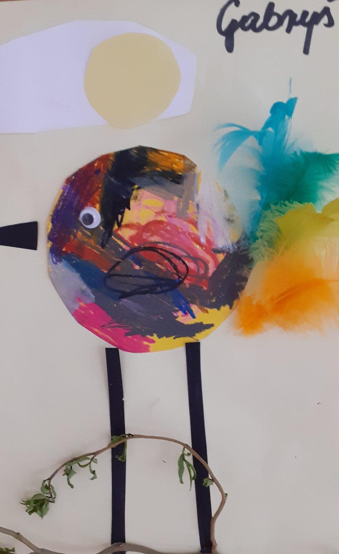 Gromadzenie wiedzy o ptakach przylatujących na wiosnę, o okresie godowym, opiece nad potomstwem i nauce latania. Budowa gniazda i oglądanie kolekcji autentycznych gniazd różnych gatunków ptaków. Ciekawostki o ptasich jajach i aktywność plastyczna „Siedzi ptaszek na gałązce…” inspirowana wierszem i doświadczeniami dzieci z ornitologicznych obserwacji.
