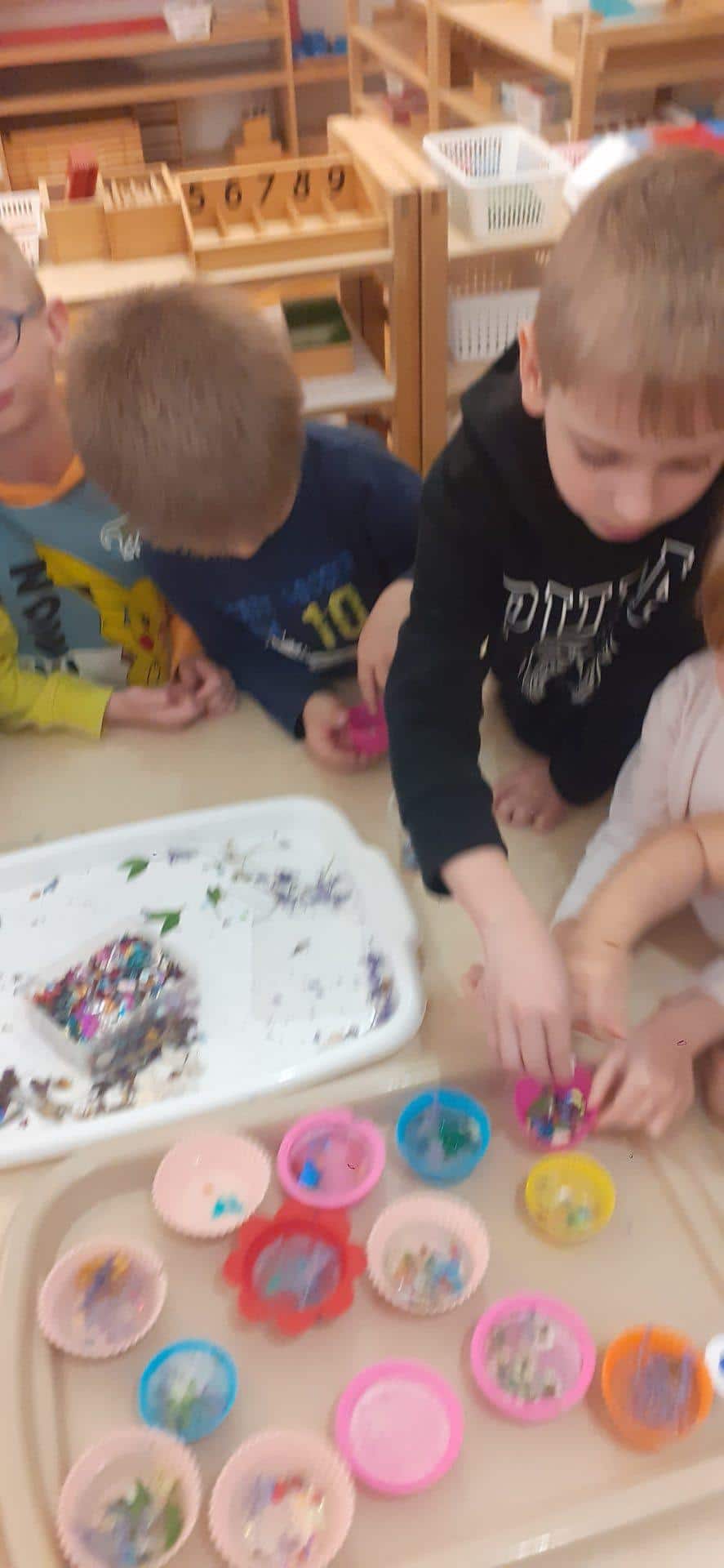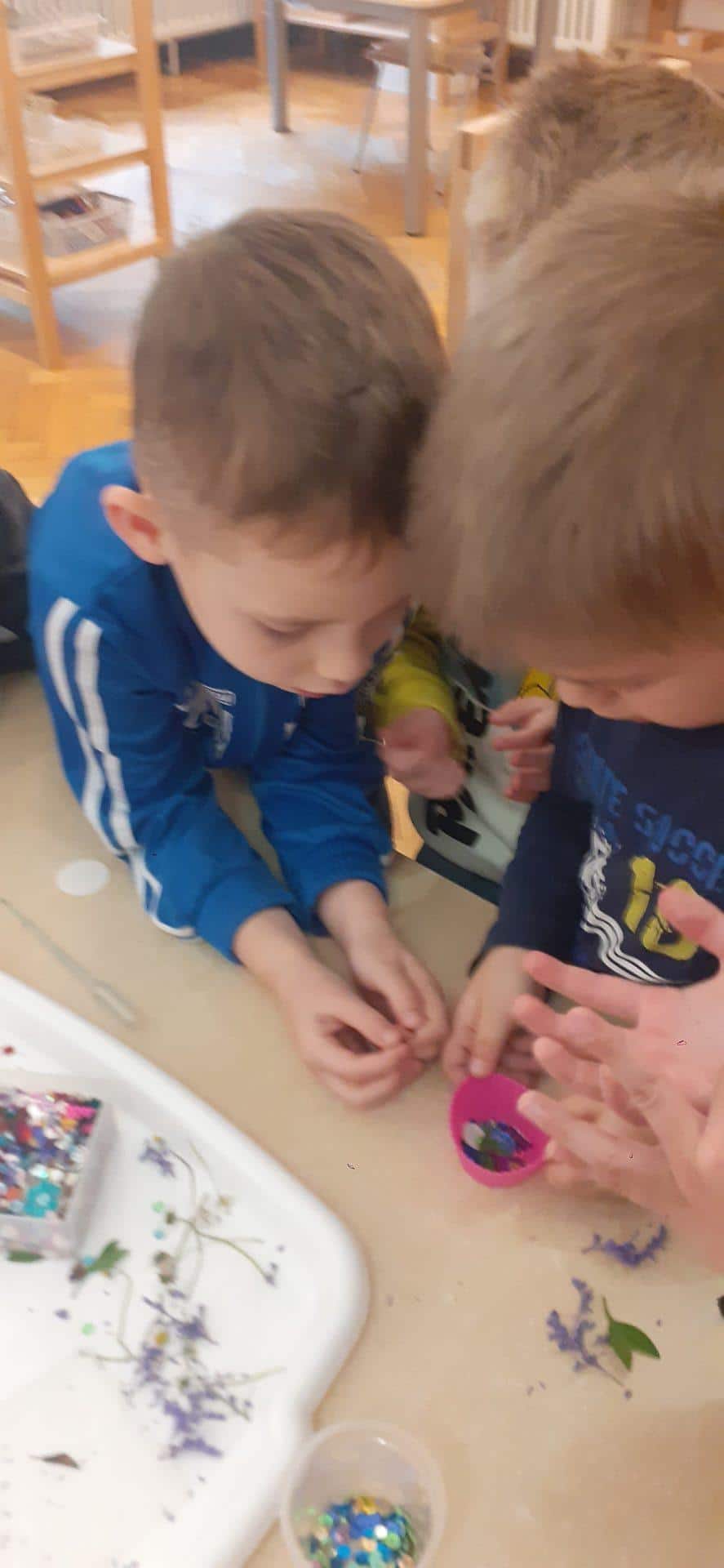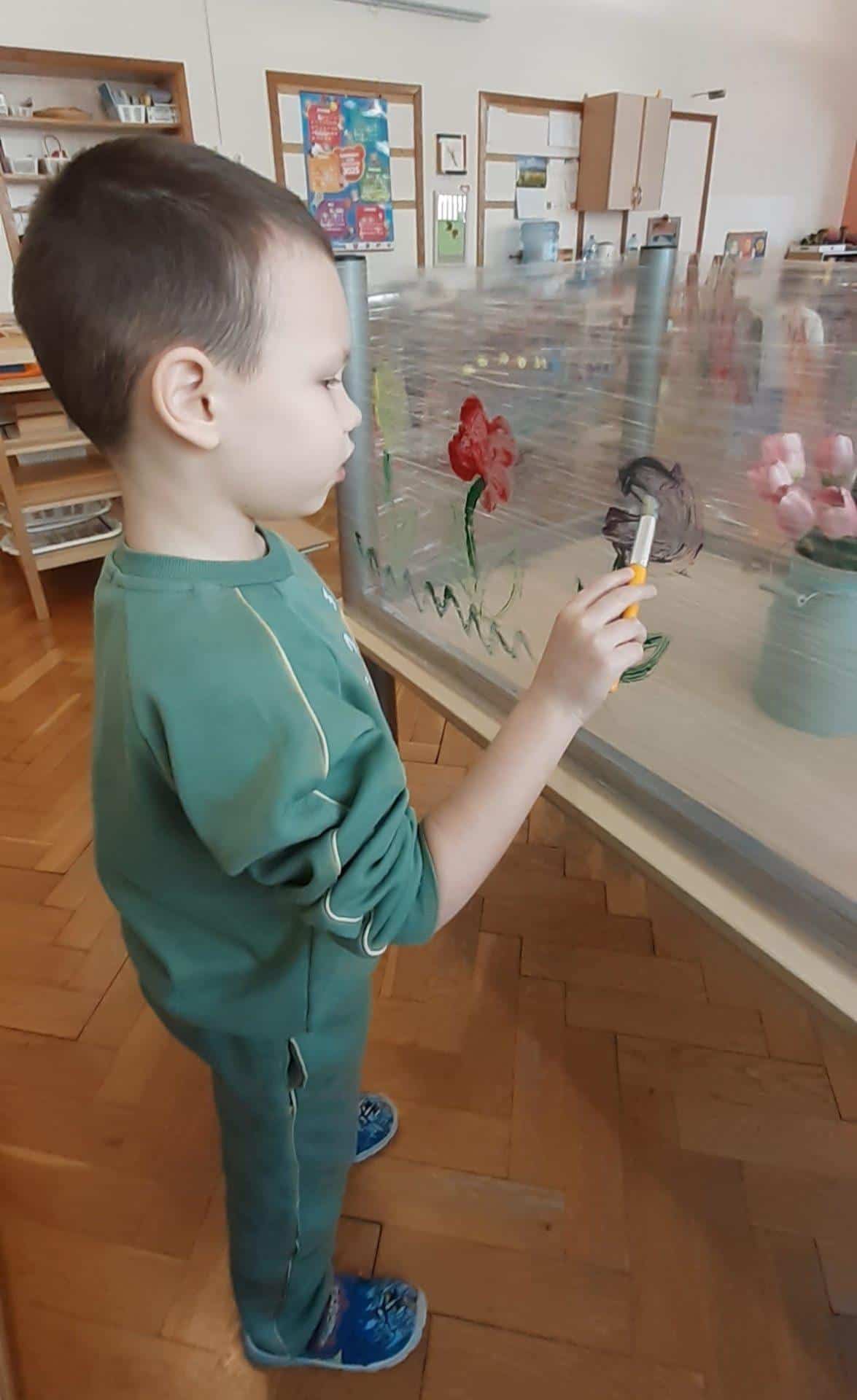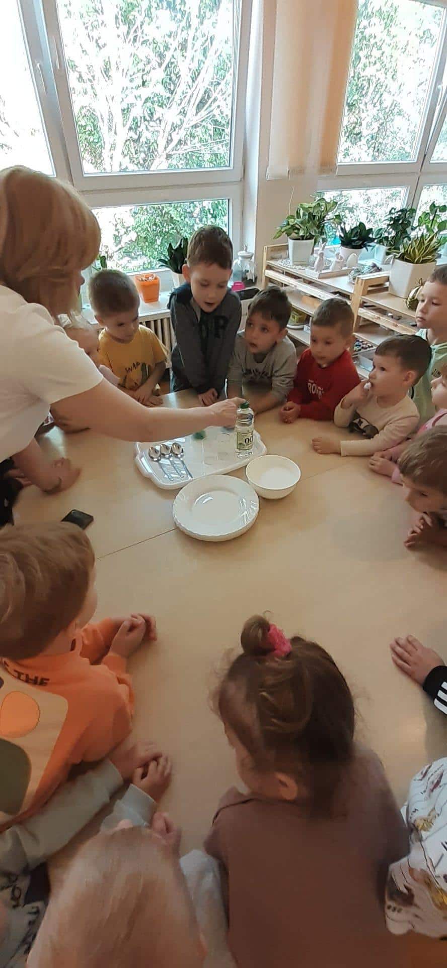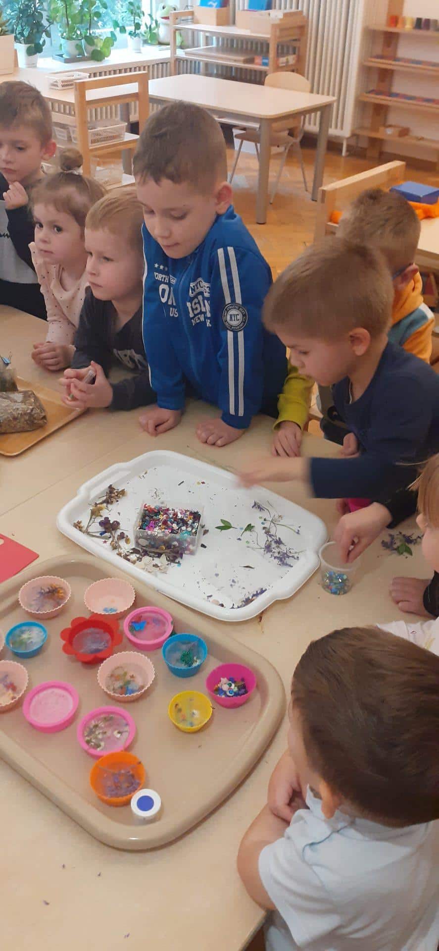 Wiosenne przebudzenie było inspiracją do założenia w sali zajęć wiosennego ogródka kwiatowego z tulipanami, żonkilami, hiacyntami, stokrotkami, pierwiosnkami. Przy okazji dzieci poznały kwiaty, które wyrastają z cebulki kwiatowej, budowę bryły korzeniowej oraz potrzeby roślin w okresie wzrostu. Kwiaty na pewno odwdzięczą się pięknym wyglądem i zapachem. Na końcu wykonano tabliczki znamionowe z nazwami kwiatów wiosennych.