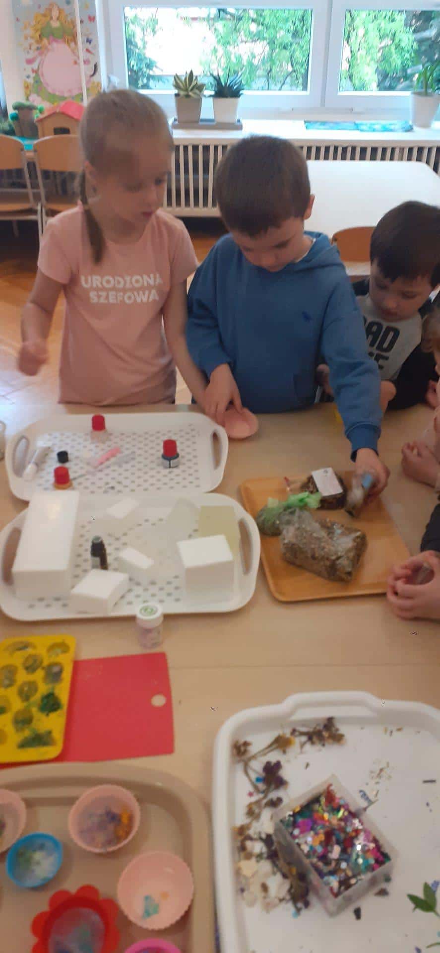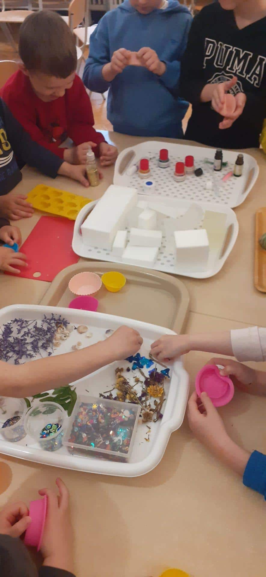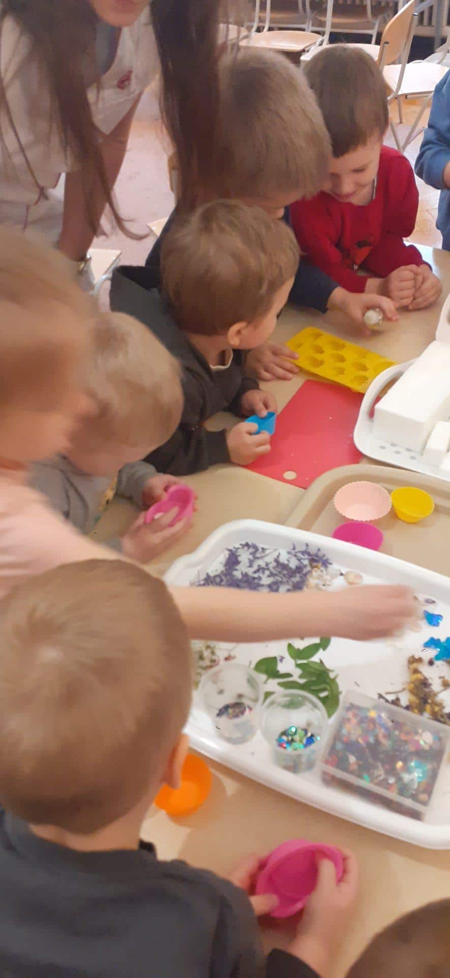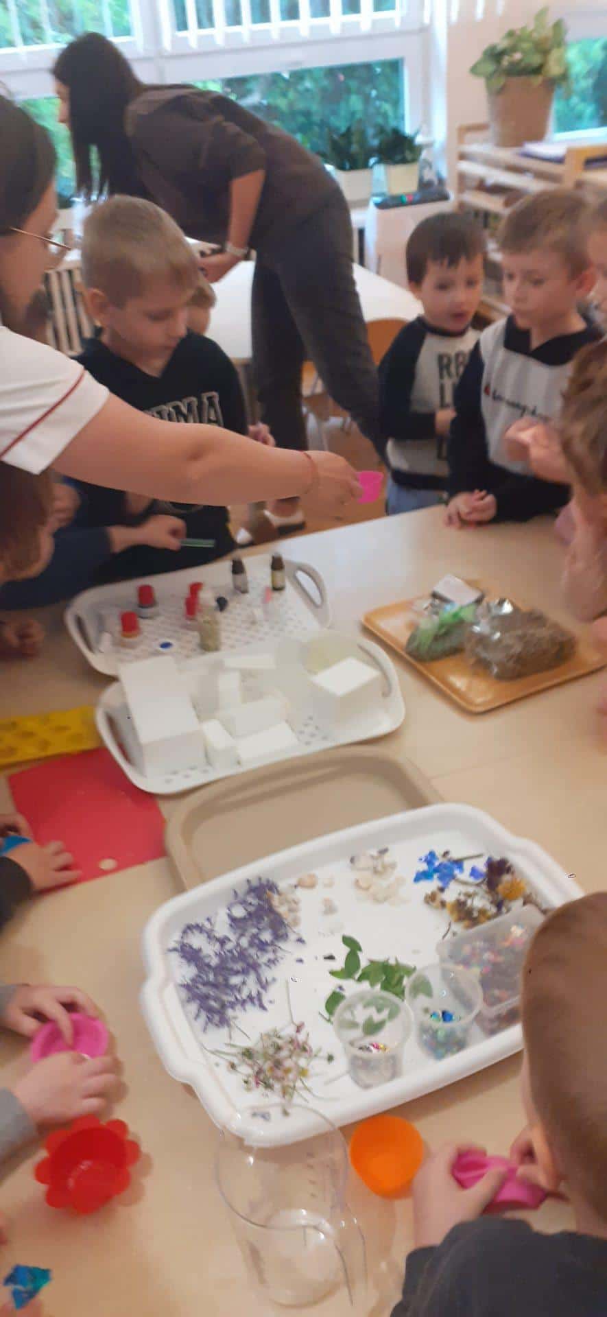 Pani Paulina, mama Julka pracująca na co dzień w drogerii kosmetycznej opowiedziała dzieciom o swojej pracy w ramach realizacji programu preorientacji zawodowej przedszkolaków, a także przeprowadziła warsztaty, podczas których powstały kolorowe, pachnące mydełka. Dziękujemy !!!