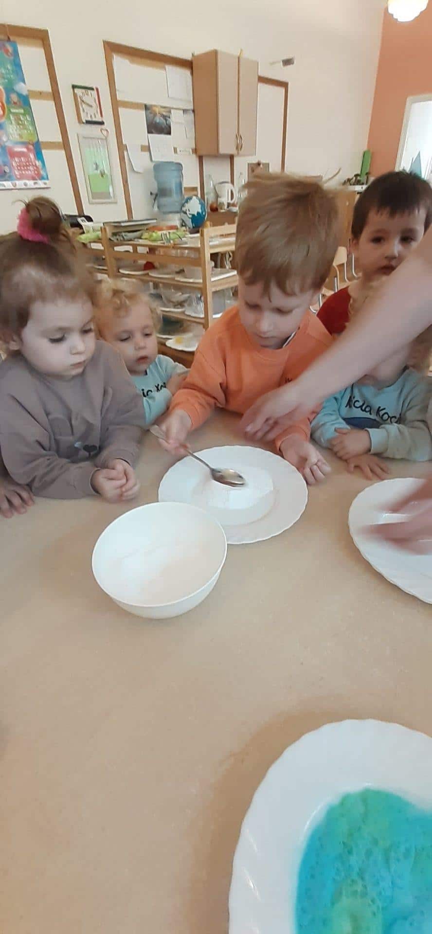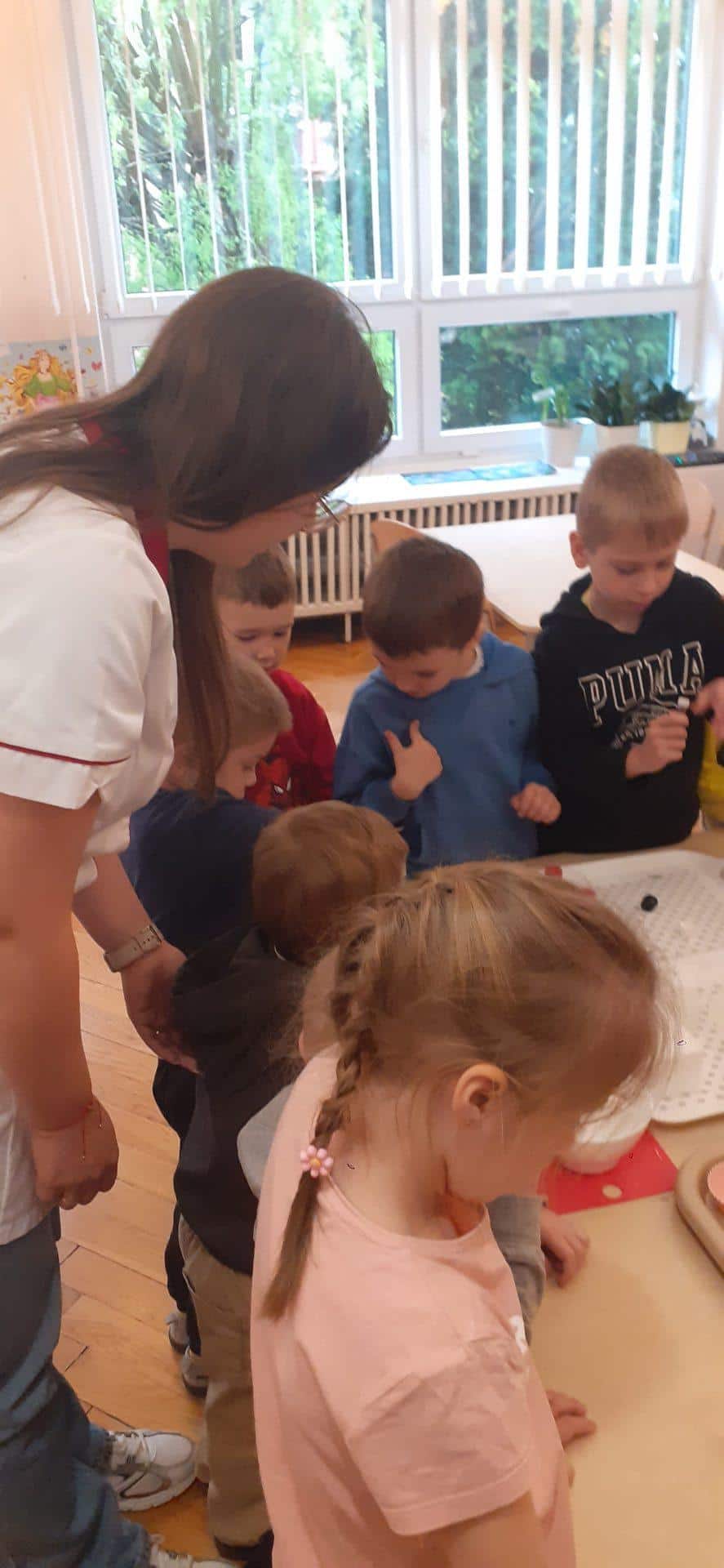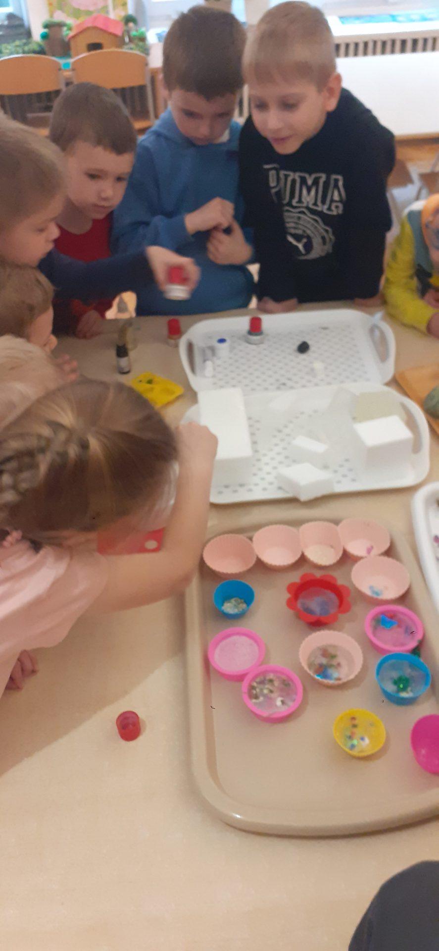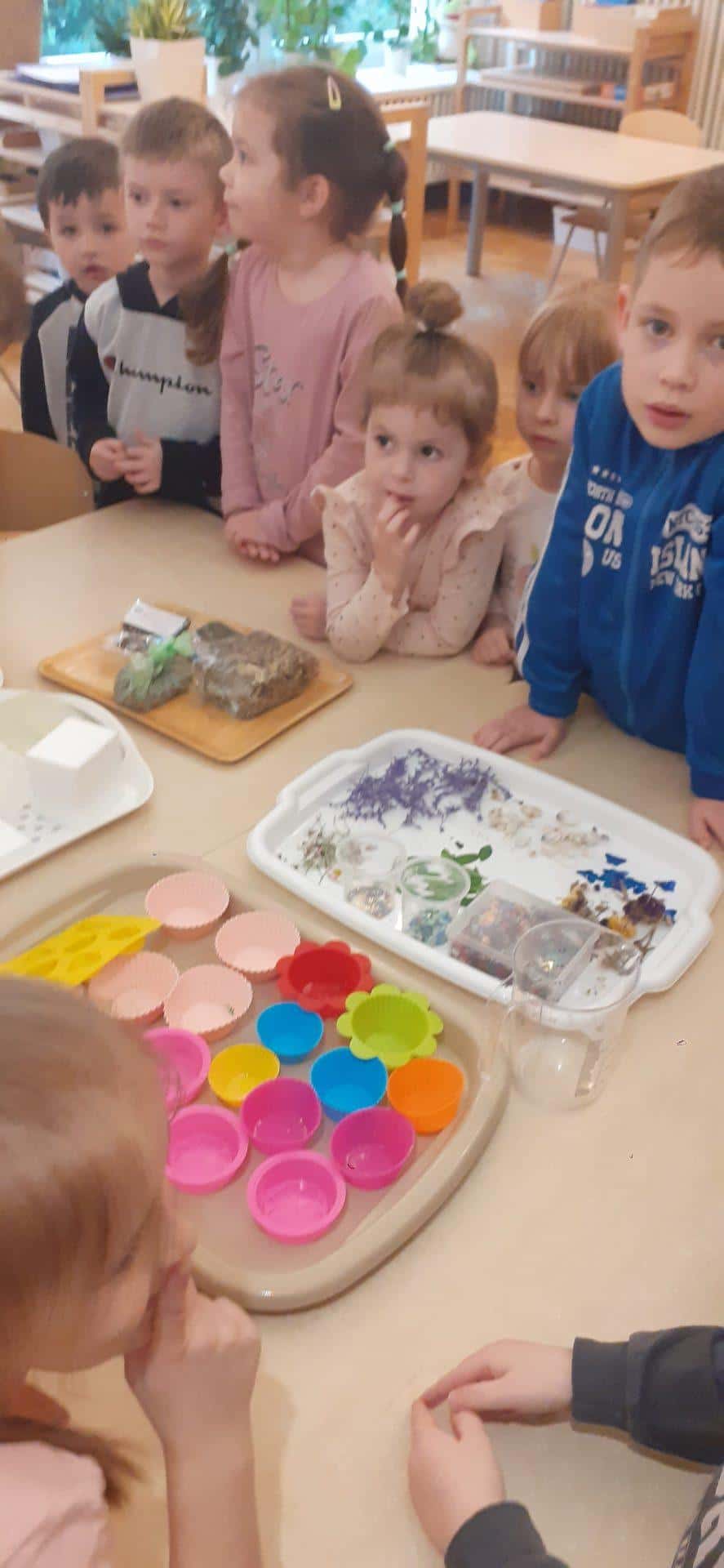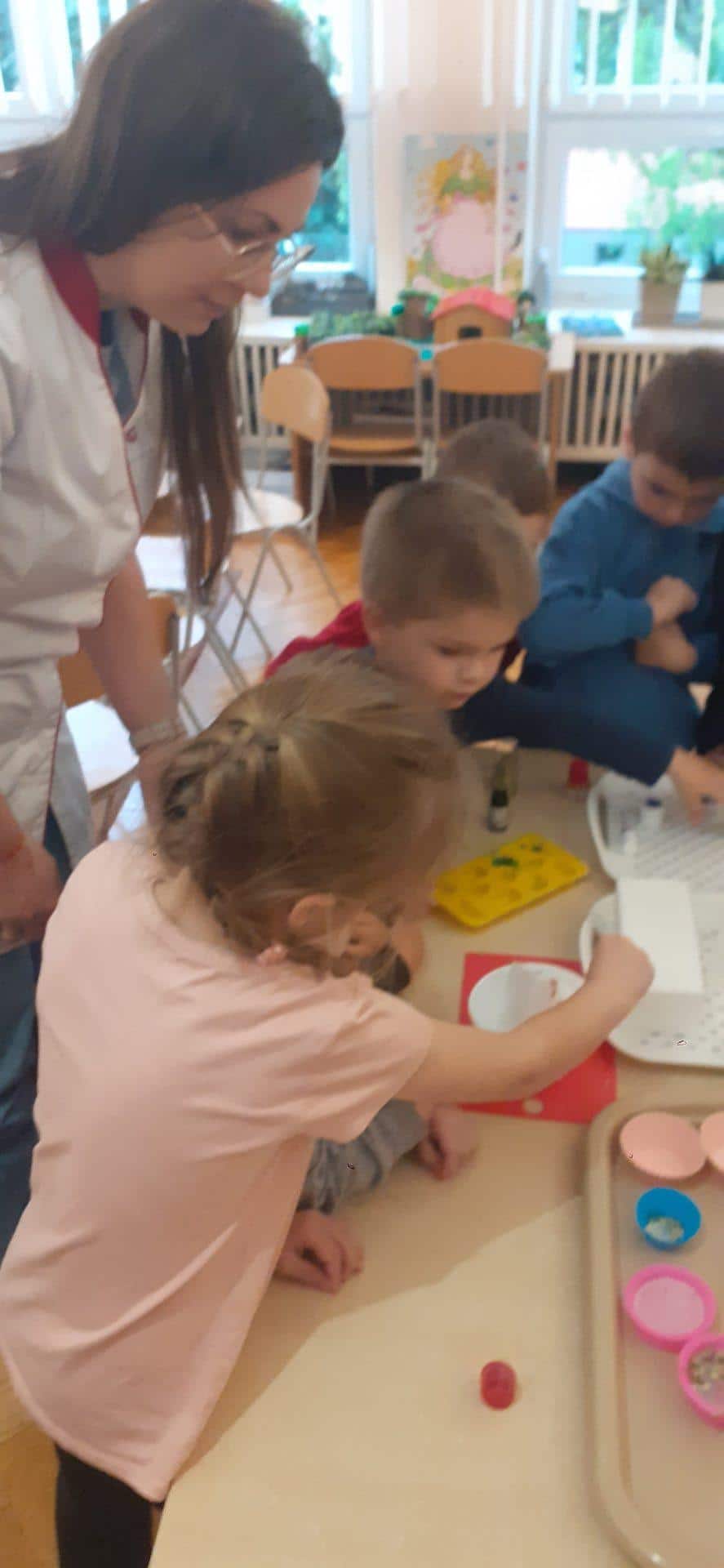 Pani Paulina, mama Julka pracująca na co dzień w drogerii kosmetycznej opowiedziała dzieciom o swojej pracy w ramach realizacji programu preorientacji zawodowej przedszkolaków, a także przeprowadziła warsztaty, podczas których powstały kolorowe, pachnące mydełka. Dziękujemy !!!