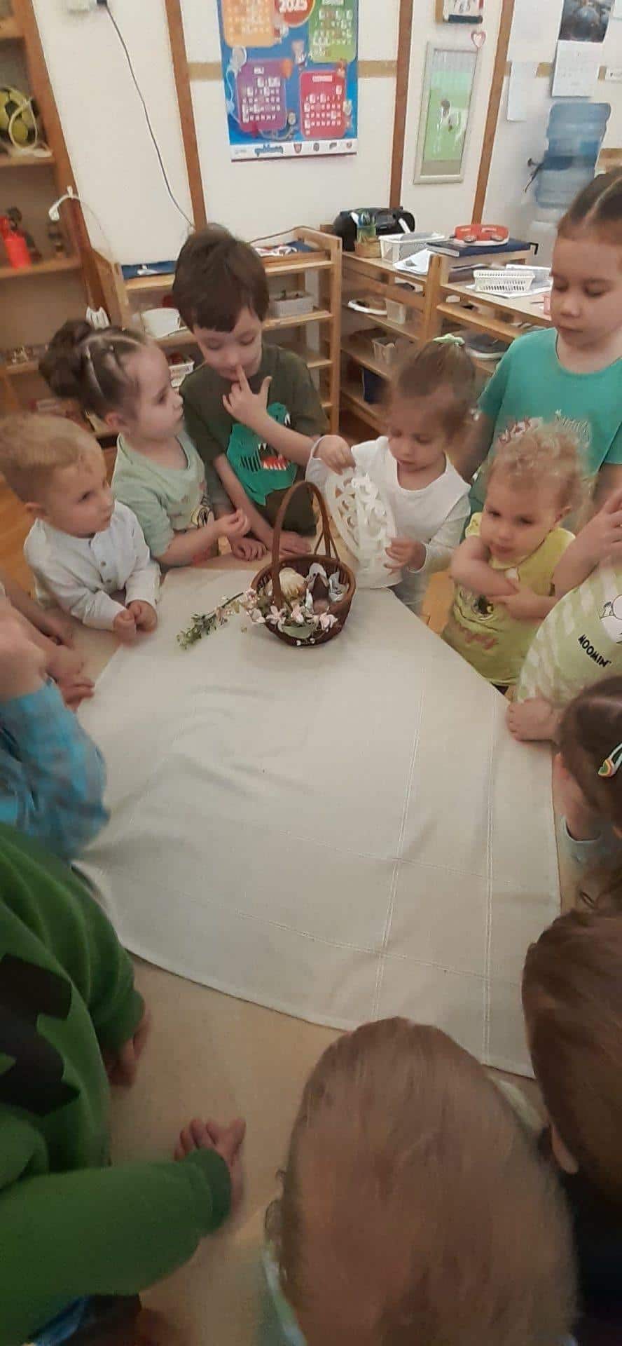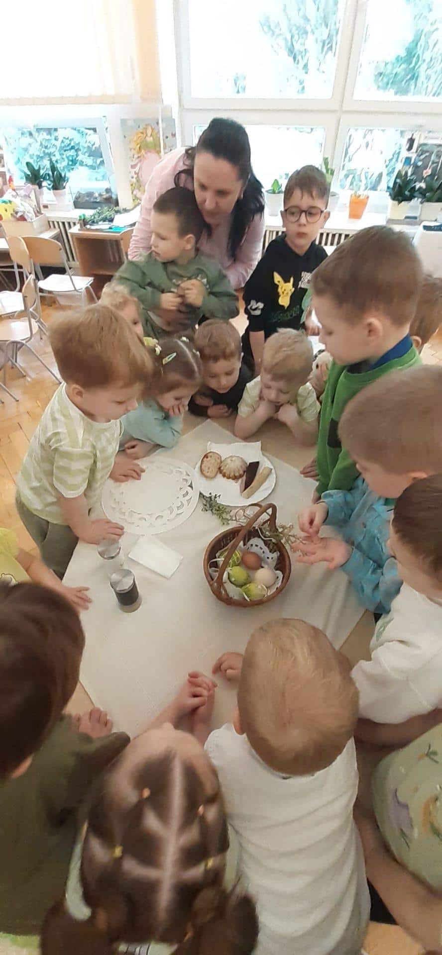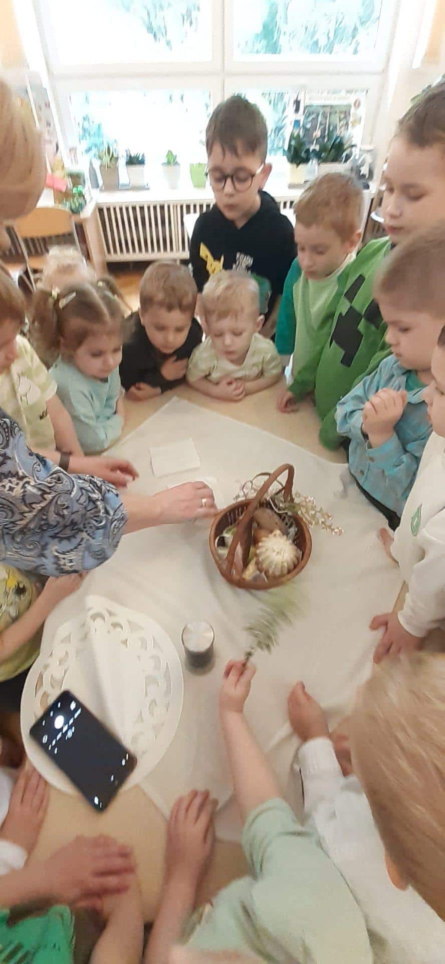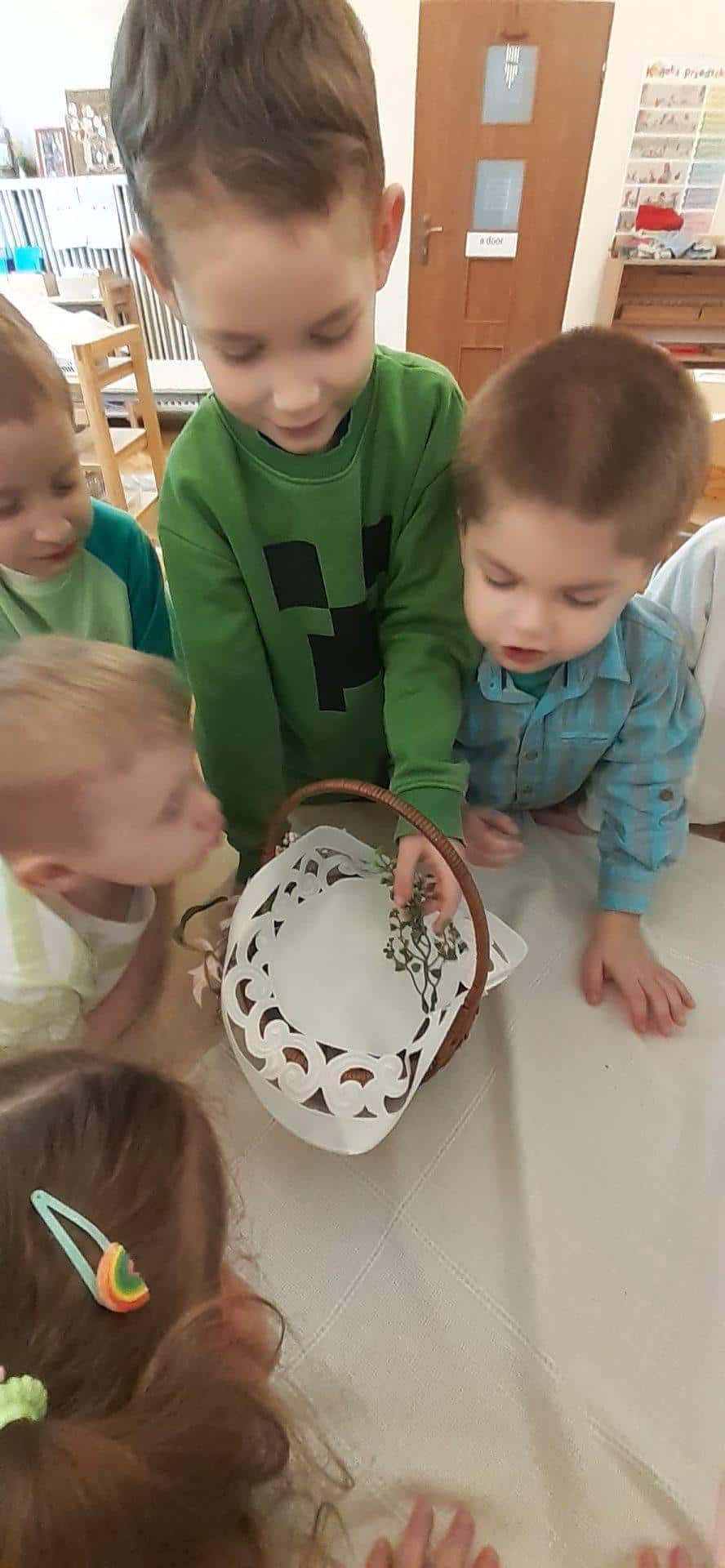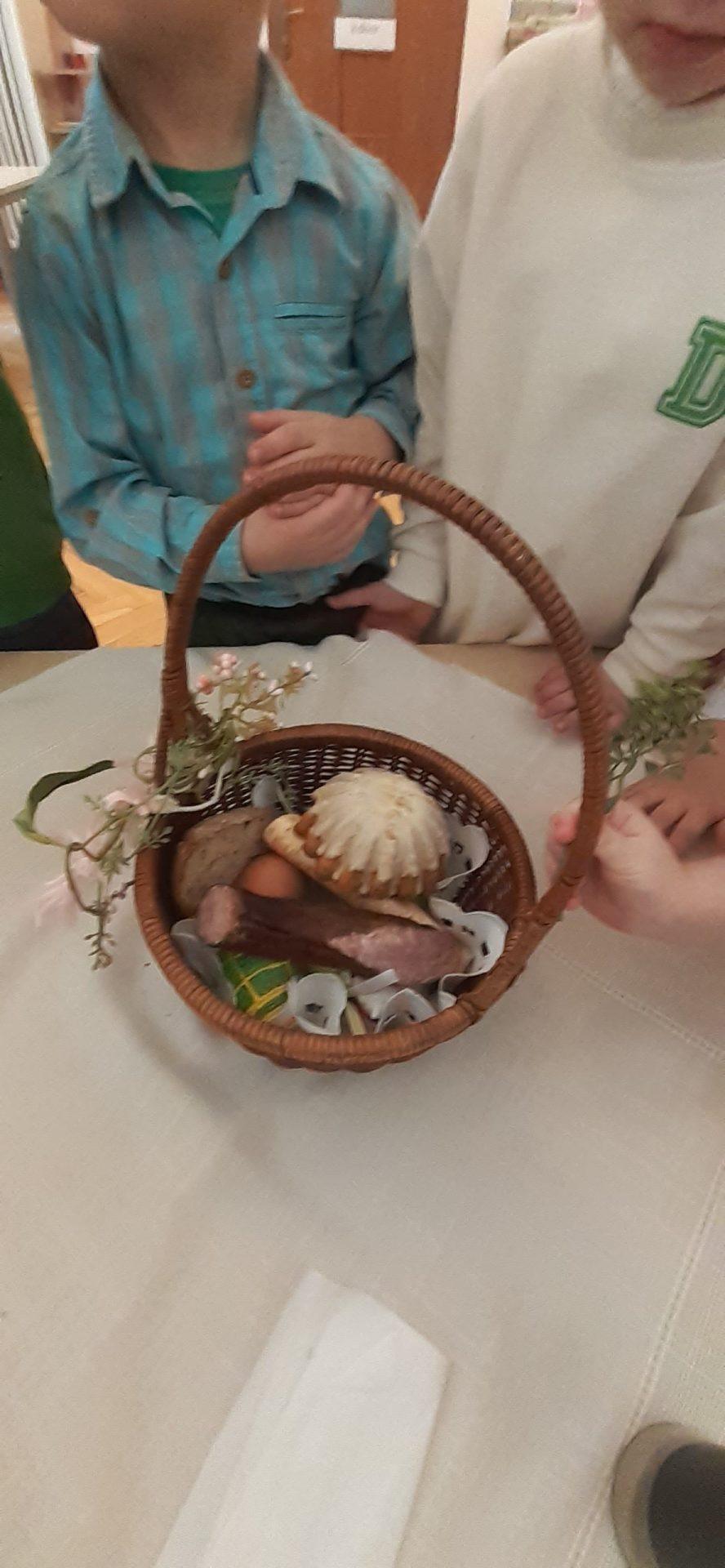 Zróżnicowane aktywności dzieci związane z pielęgnowaniem tradycji wielkanocnych. Przygotowanie koszyczka wielkanocnego, poznanie symboliki wielkanocnych pokarmów. Redagowanie życzeń świątecznych.