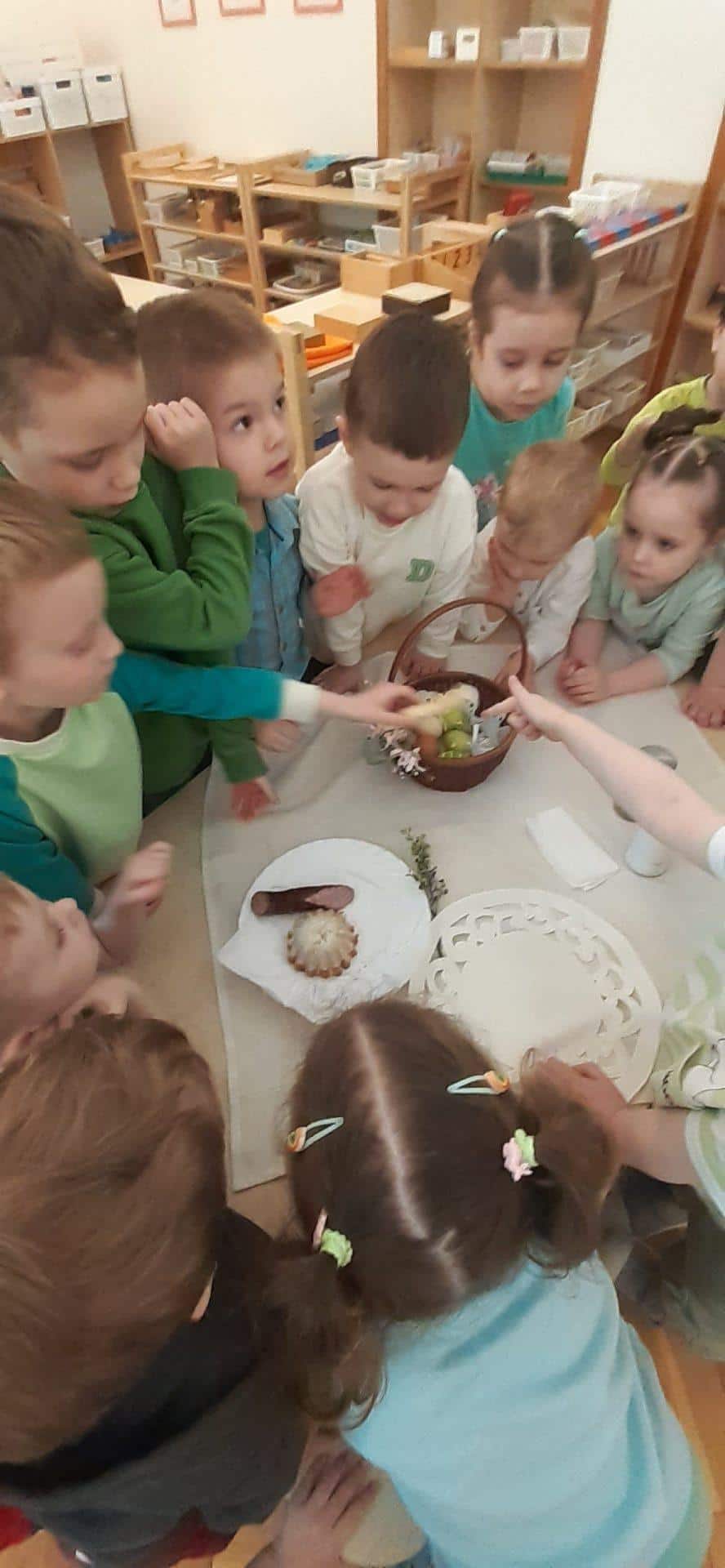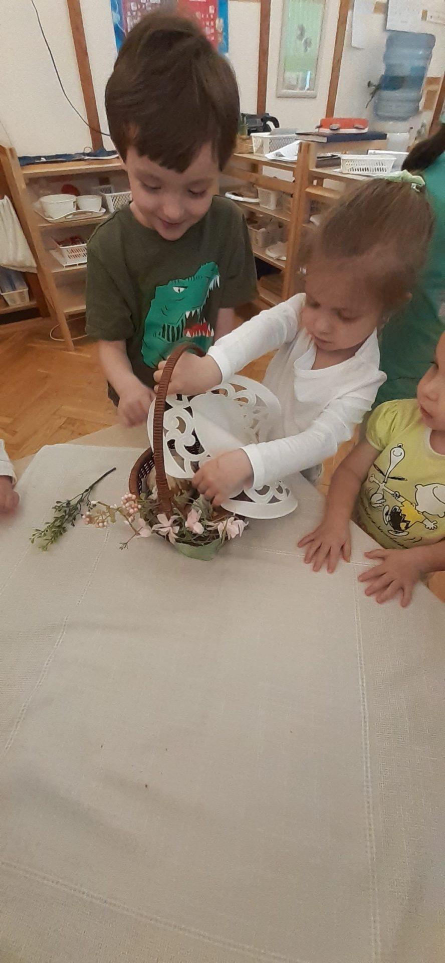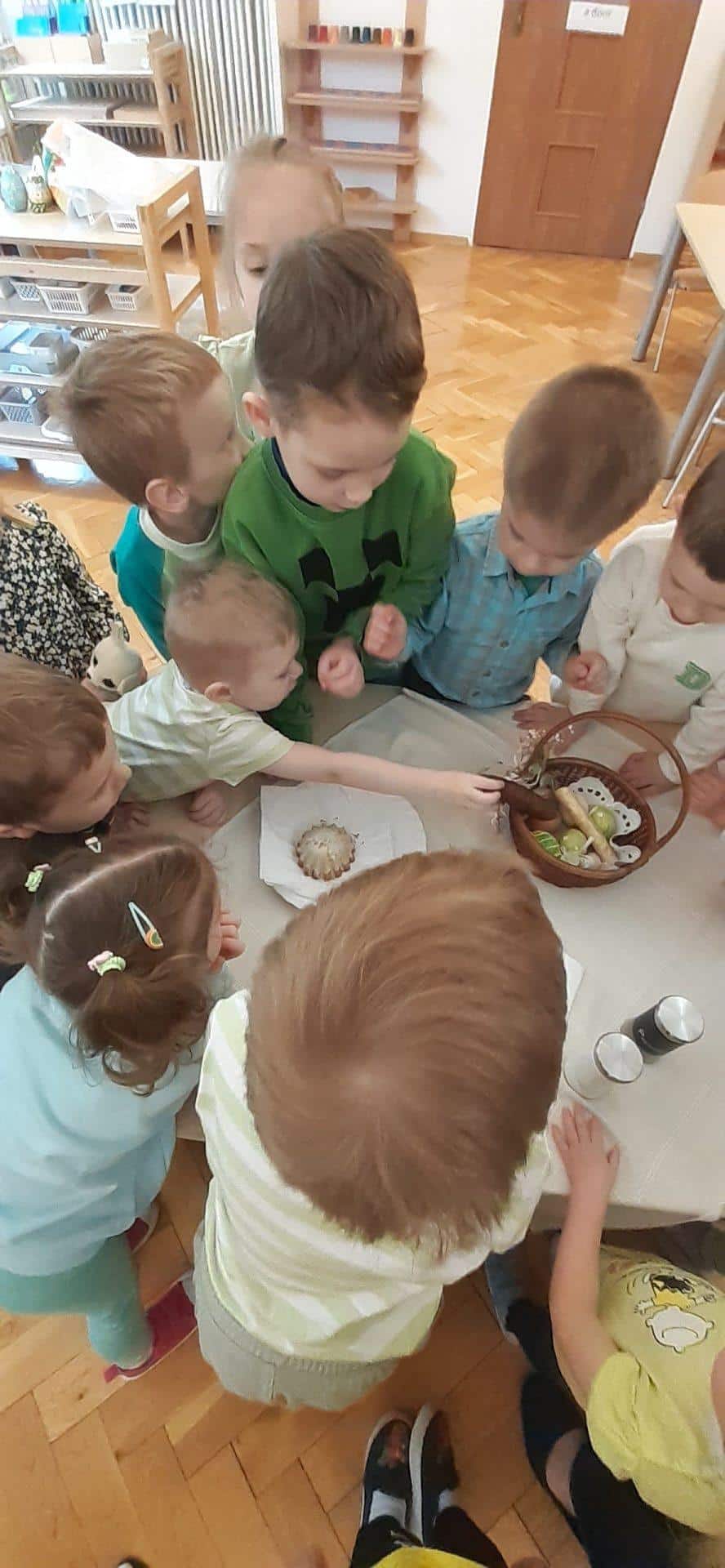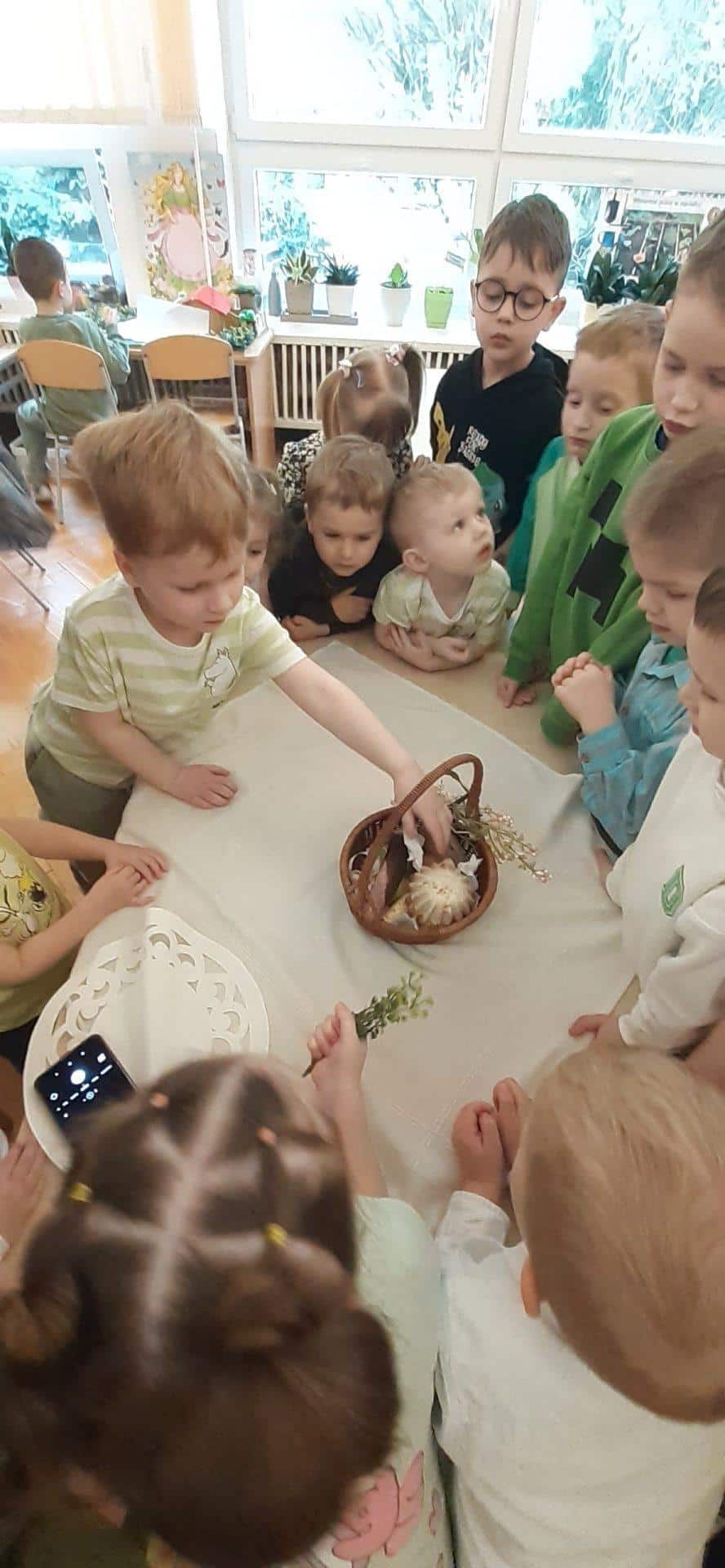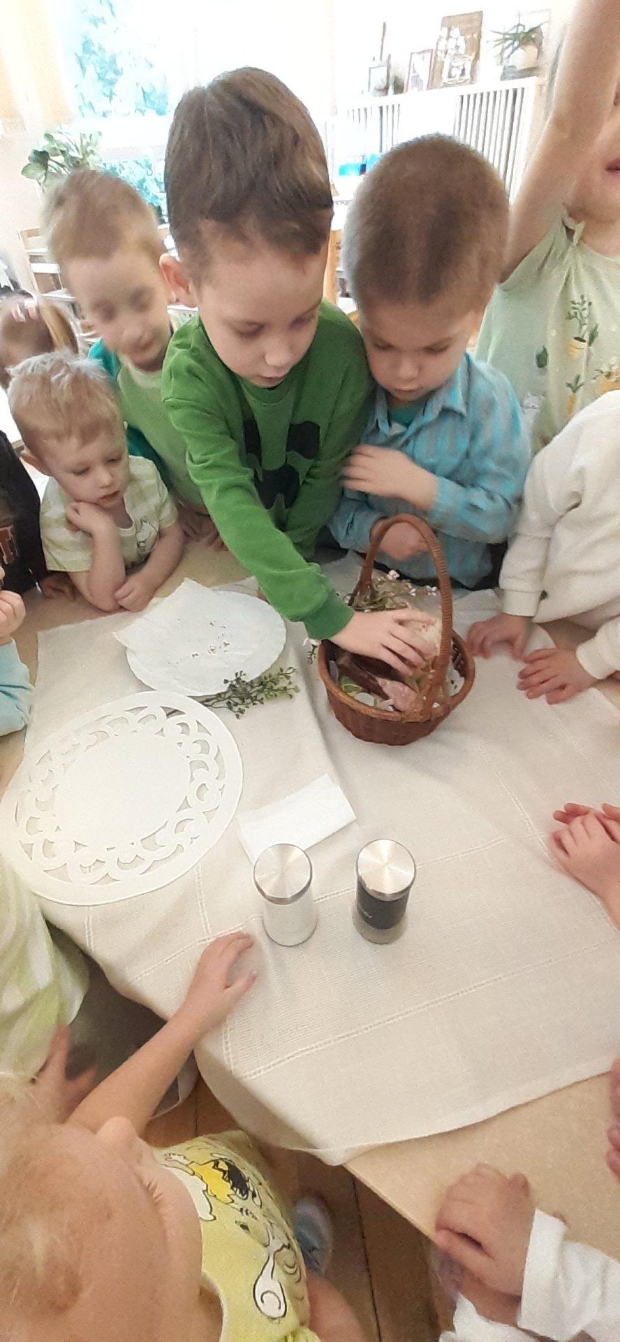 Zróżnicowane aktywności dzieci związane z pielęgnowaniem tradycji wielkanocnych. Przygotowanie koszyczka wielkanocnego, poznanie symboliki wielkanocnych pokarmów. Redagowanie życzeń świątecznych.