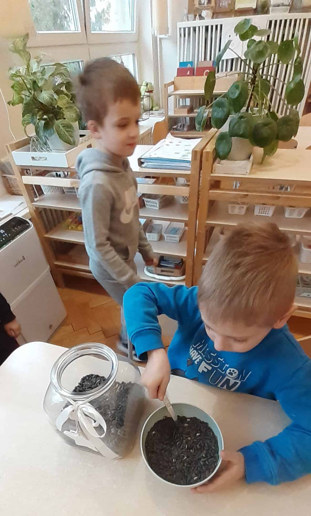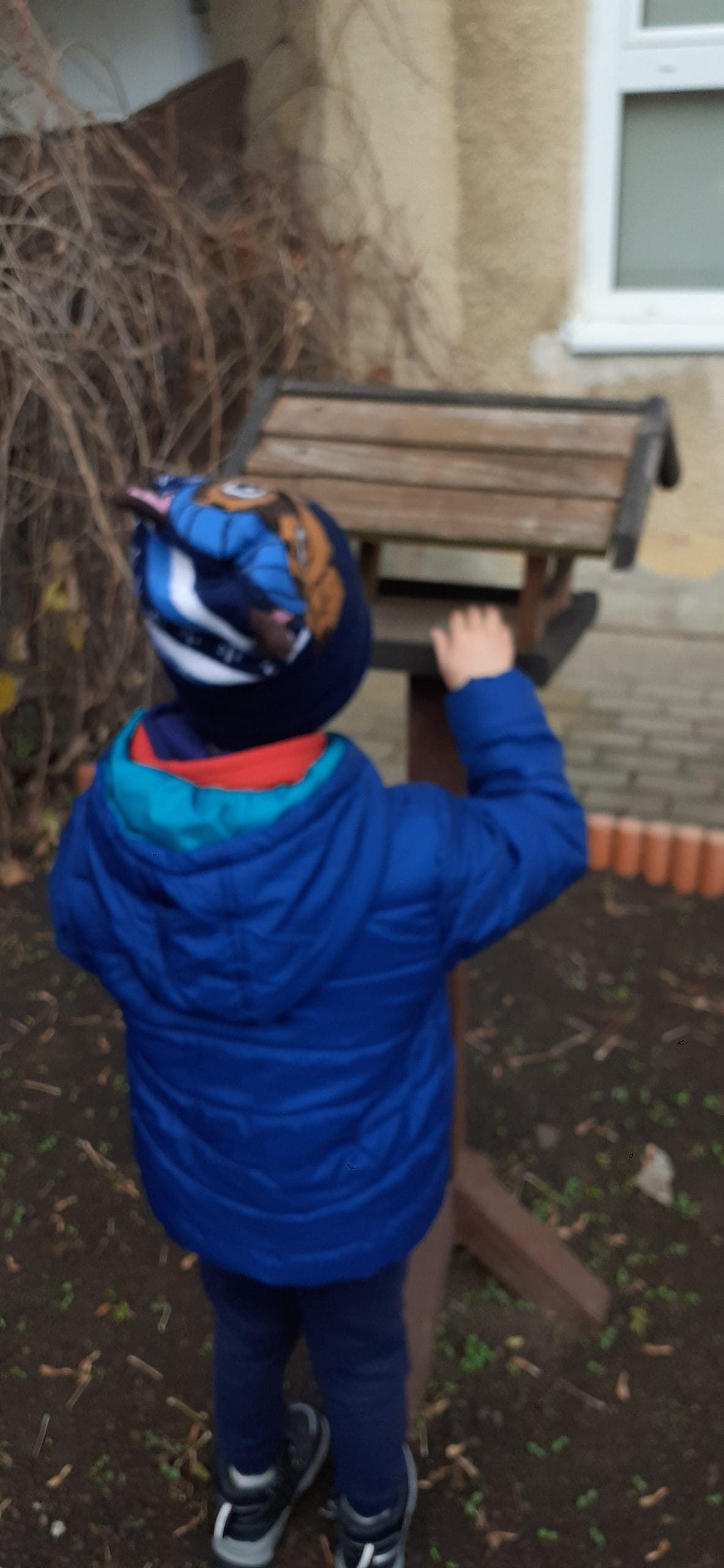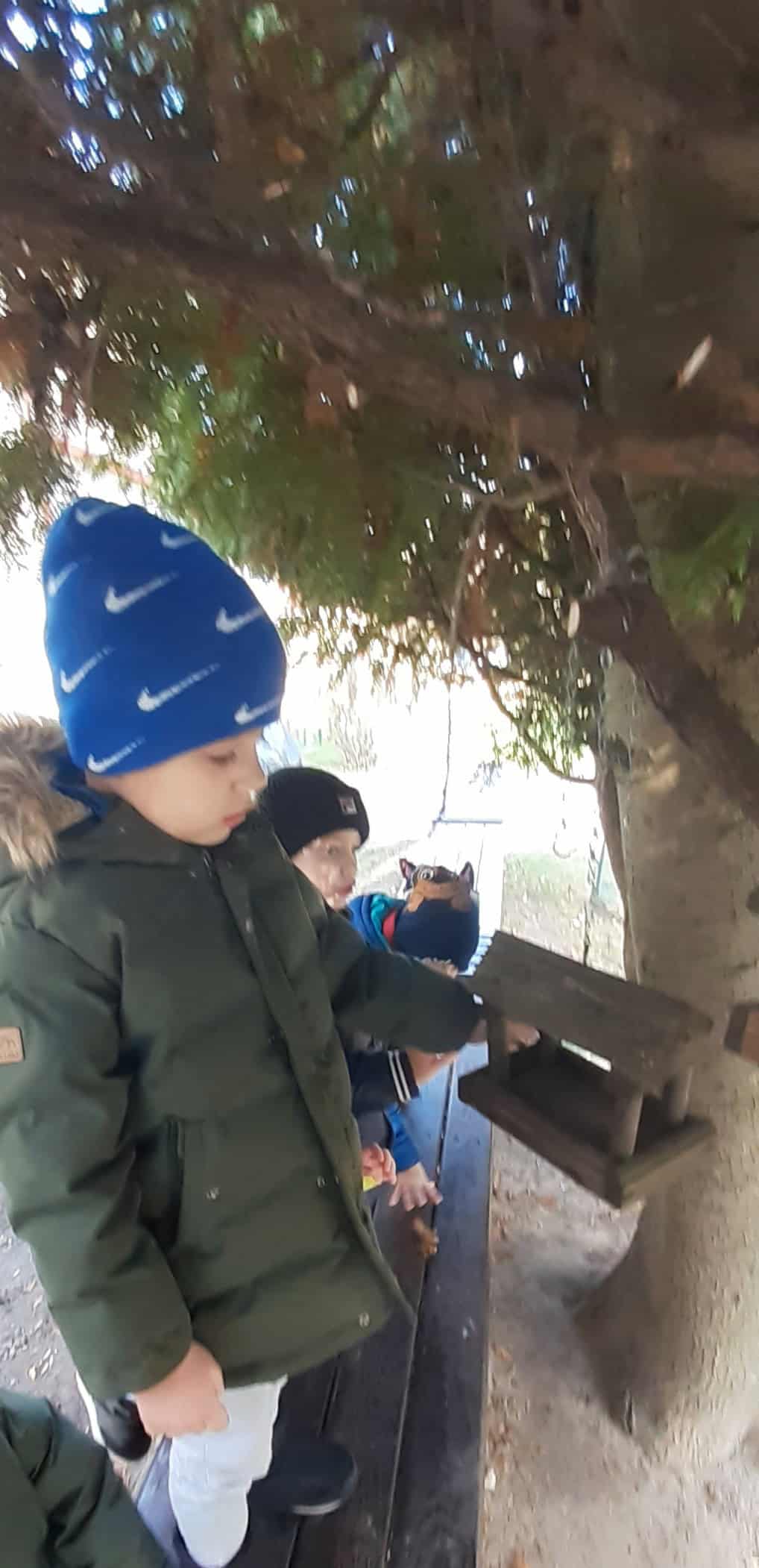 Początek grudnia to czas, kiedy intensywnie zajęliśmy się opieką nad ptakami. To przecież czas, kiedy ich potrzeby ogromne wzrastają wraz ze zmieniającymi się warunkami atmosferycznymi. Tak więc dzieci z grupy Pomarańczowej dokonały przeglądu stanu karmników znajdujących się na terenie ogrodu przedszkolnego, z pomocą pana Zbyszka – przedszkolnego konserwatora dokonały naprawy uszkodzonych elementów oraz montażu nowego karmnika wykonanego podczas warsztatów stolarskich z udziałem rodzica. Nie mogło zabraknąć czynności związanych z wykonaniem odżywczej mieszanki pokarmowej dla ptaków i wyłożeniem jej do karmników. Przy okazji dzieci utrwaliły budowę ptaków, poznały ich potrzeby pokarmowe oraz przyswoiły nazwy ptaków zimujących.