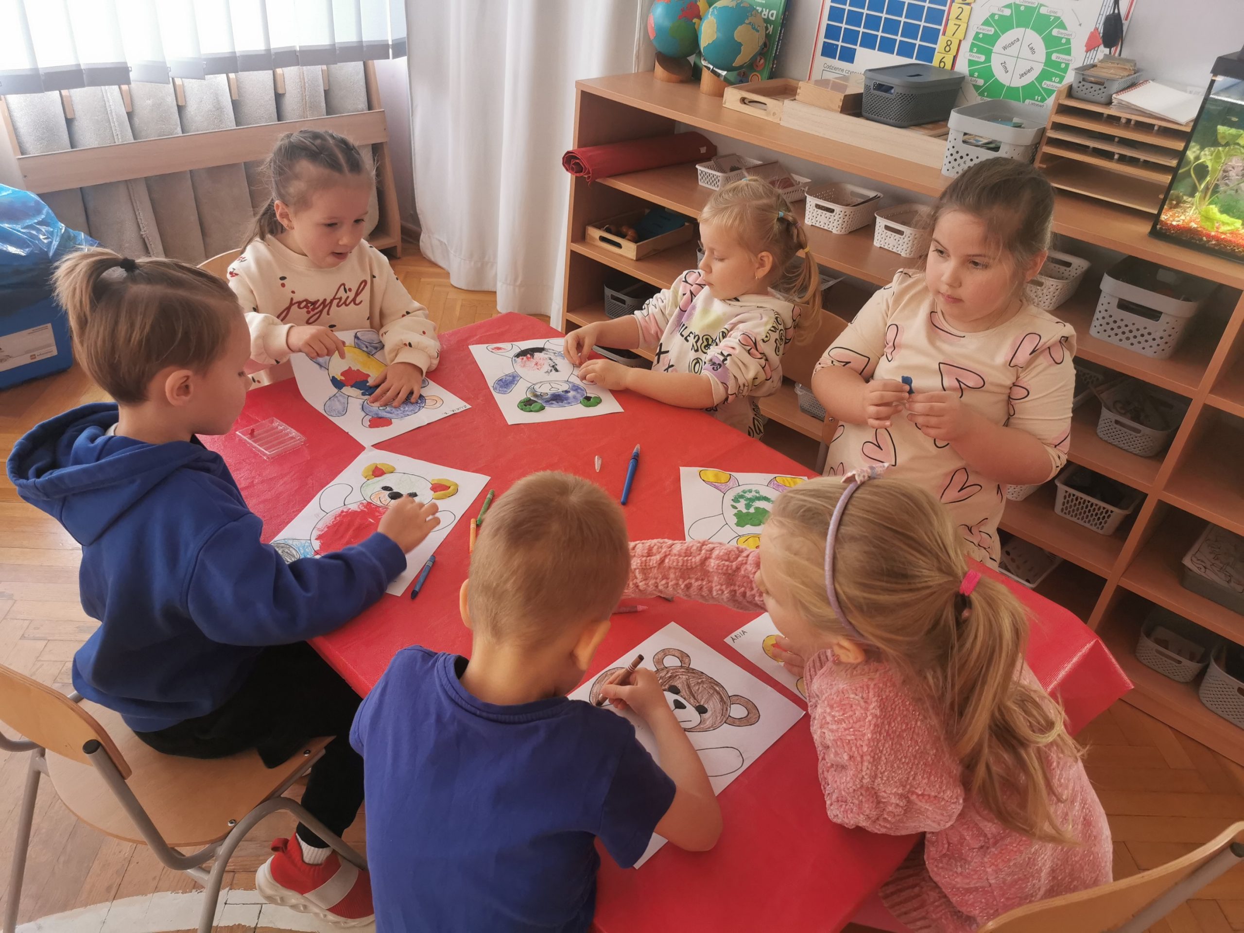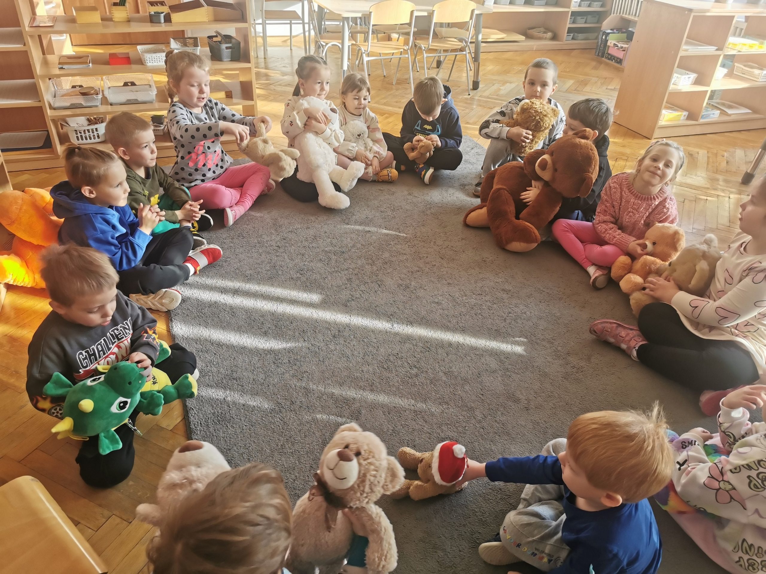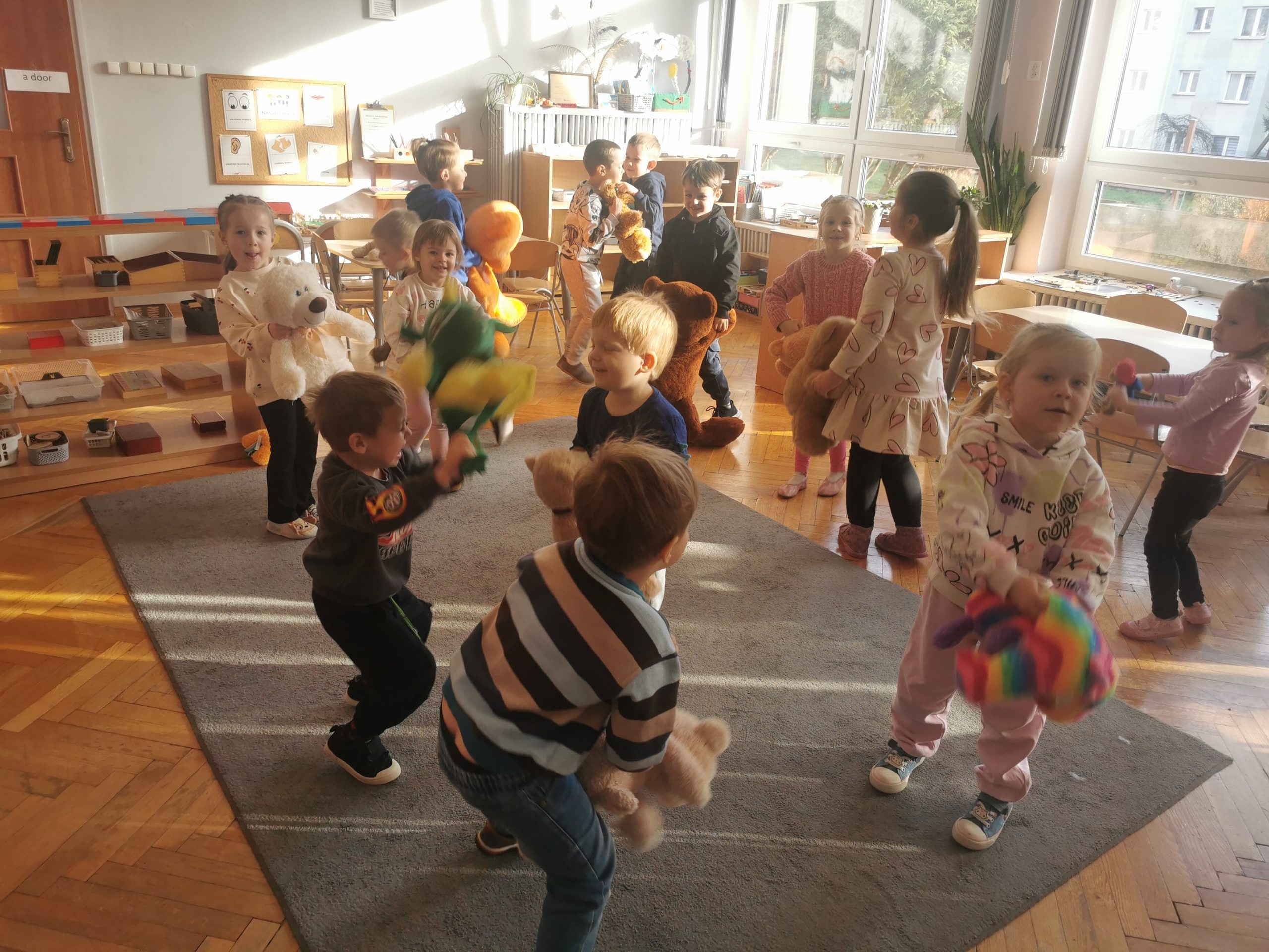 Nasza grupa również włączyła się w obchody tego wyjątkowego dla wszystkich dzieci święta. Tego dnia nasze przedszkolaki przyniosły swoich pluszowych ulubieńców, wśród których, oprócz typowych, pluszowych misiów, pojawiły się w naszej sali pluszowe pieski, kotki, czy małpki.