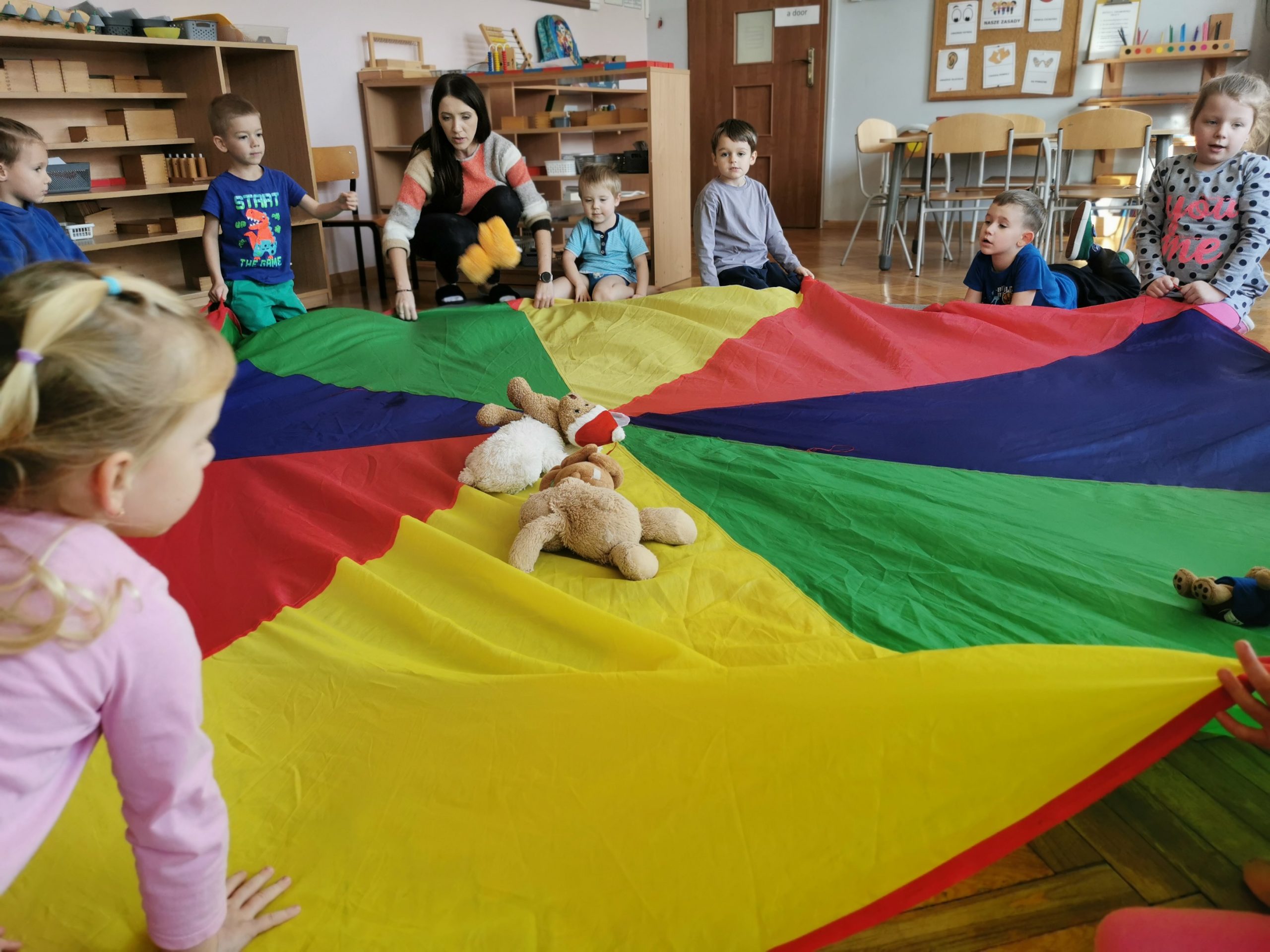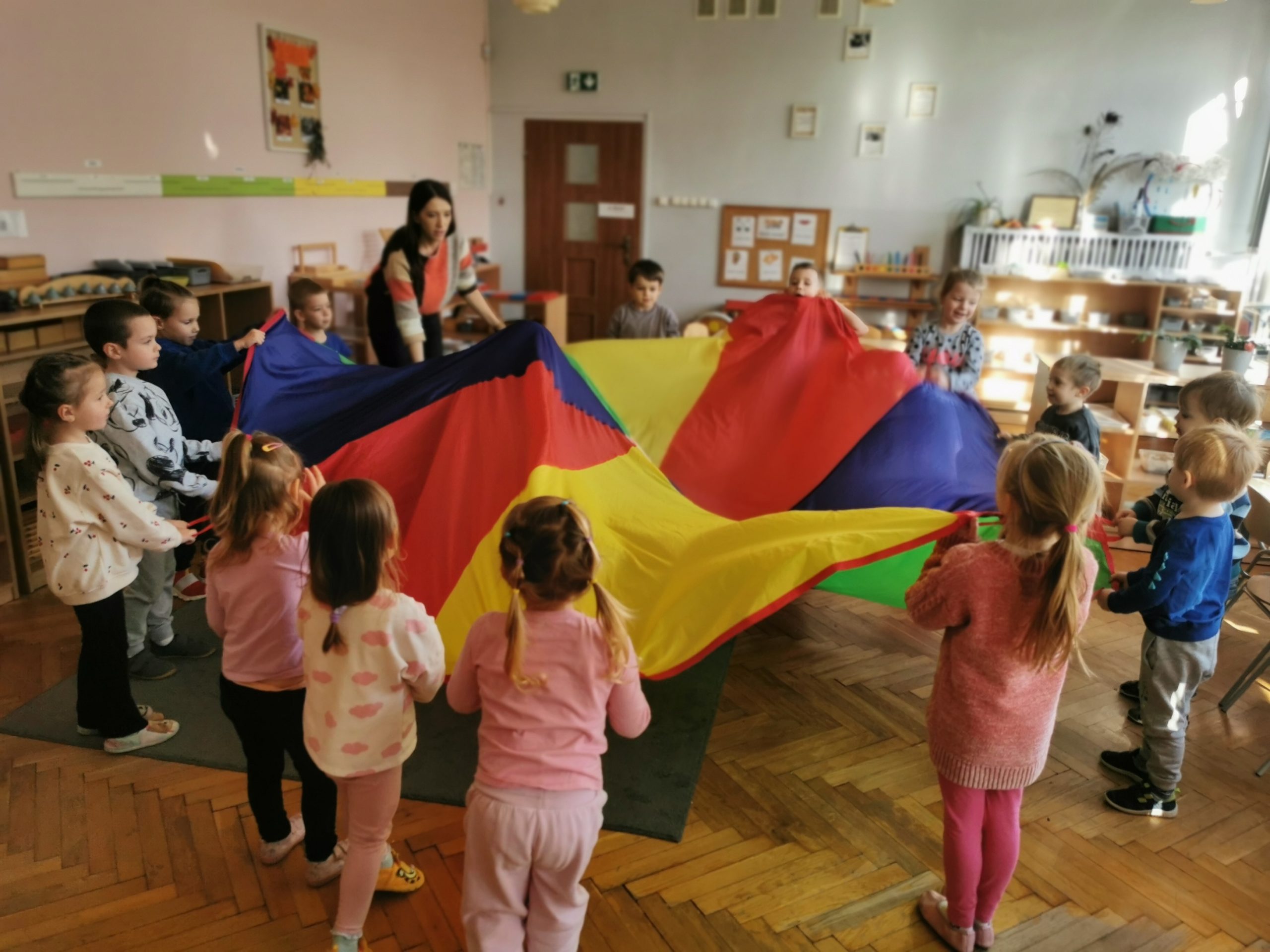 – zabawy z chustą animacyjną.