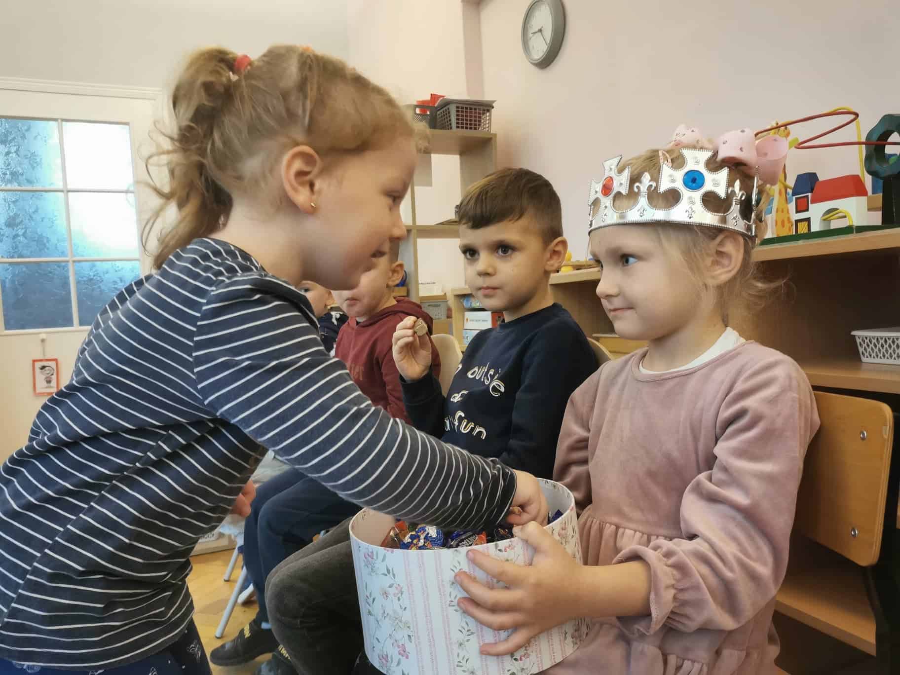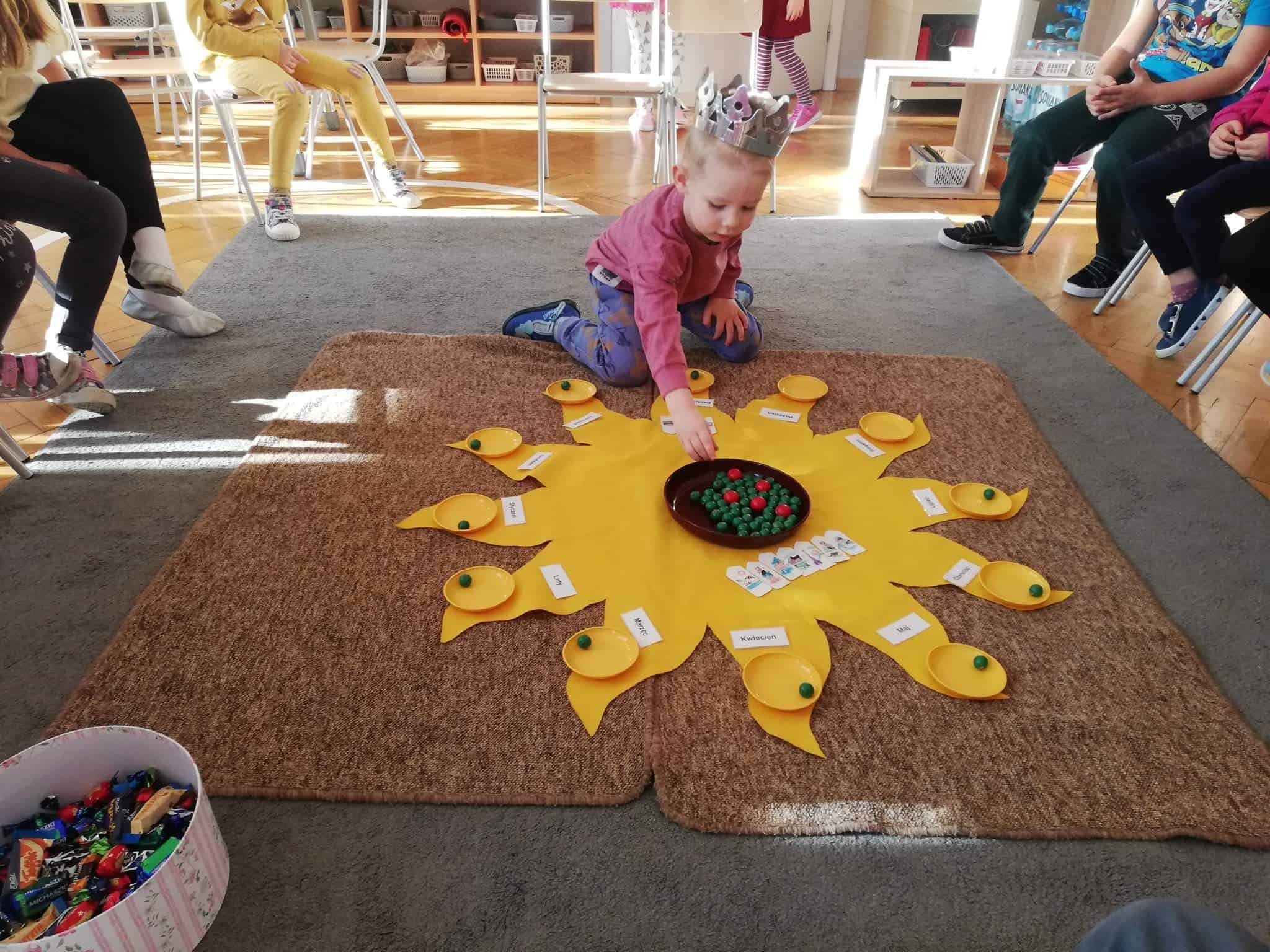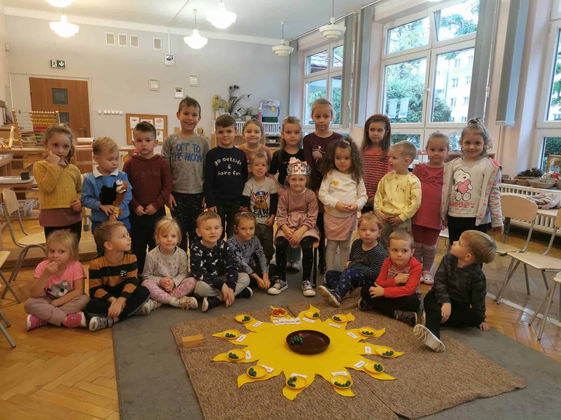Urodziny świętowaliśmy zgodnie z montessoriańskim zwyczajem, śpiewaliśmy Sto lat, składaliśmy piękne życzenia, a także częstowaliśmy się słodyczami.
