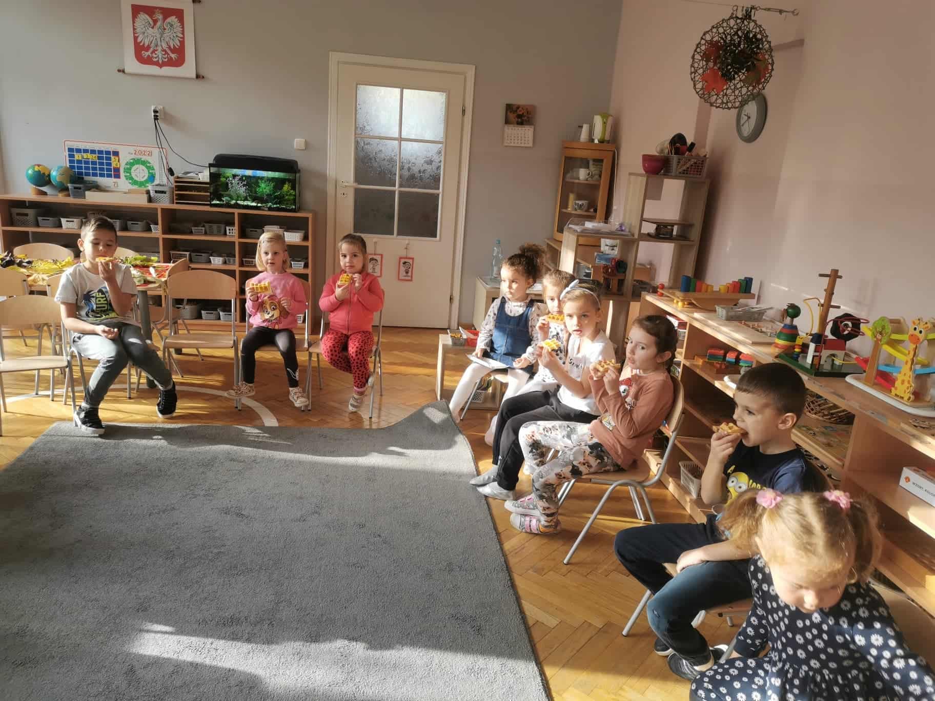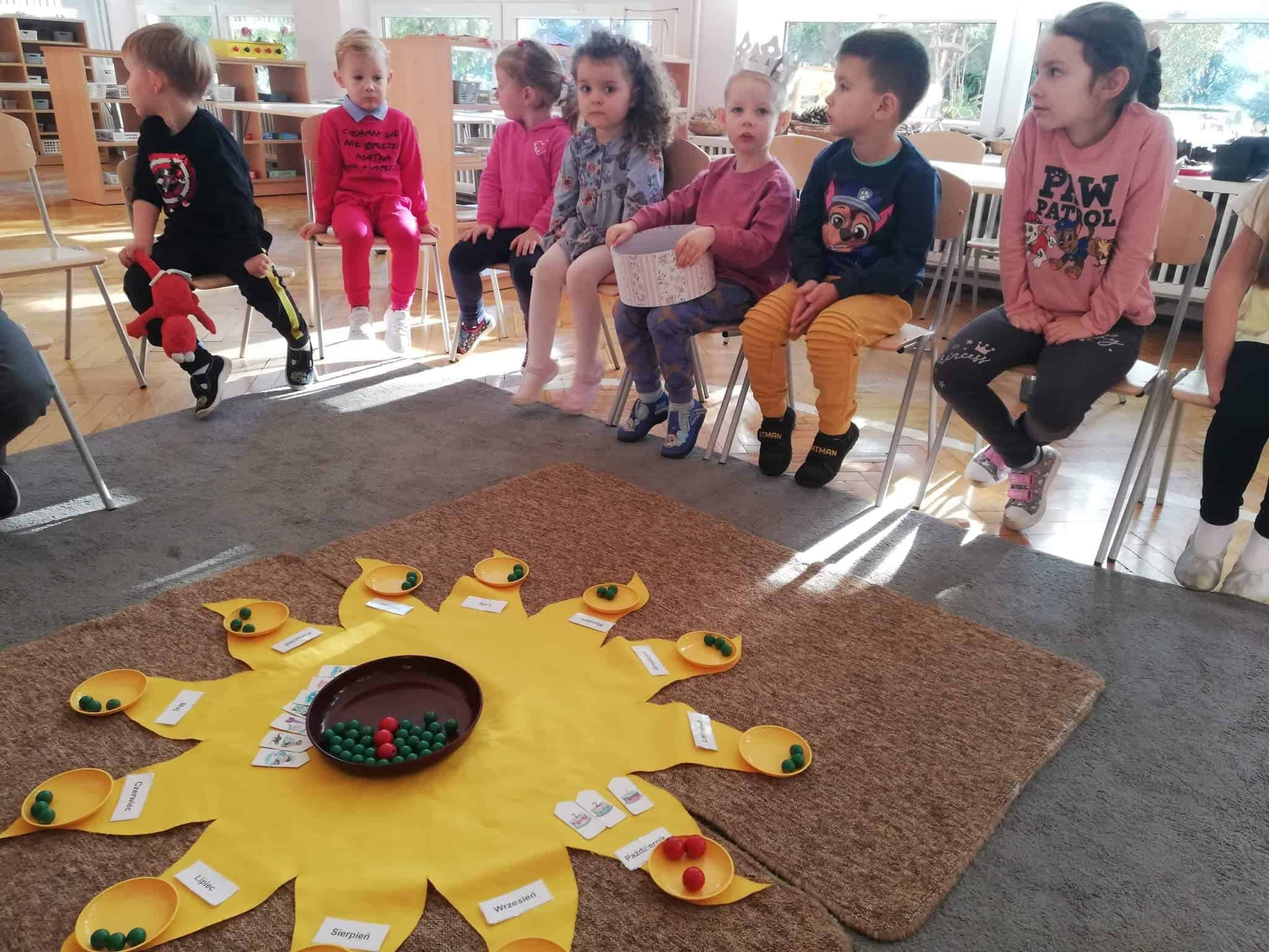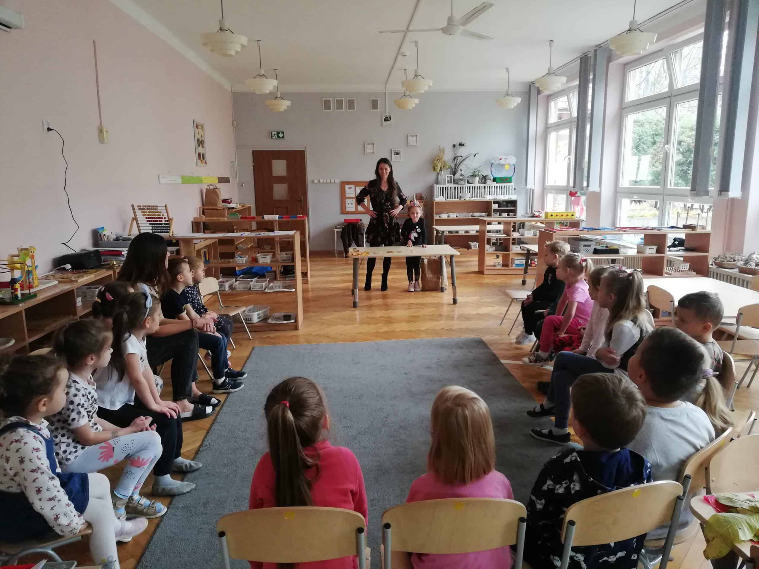 Urodziny świętowaliśmy zgodnie z montessoriańskim zwyczajem, śpiewaliśmy Sto lat, składaliśmy piękne życzenia, a także częstowaliśmy się słodyczami.