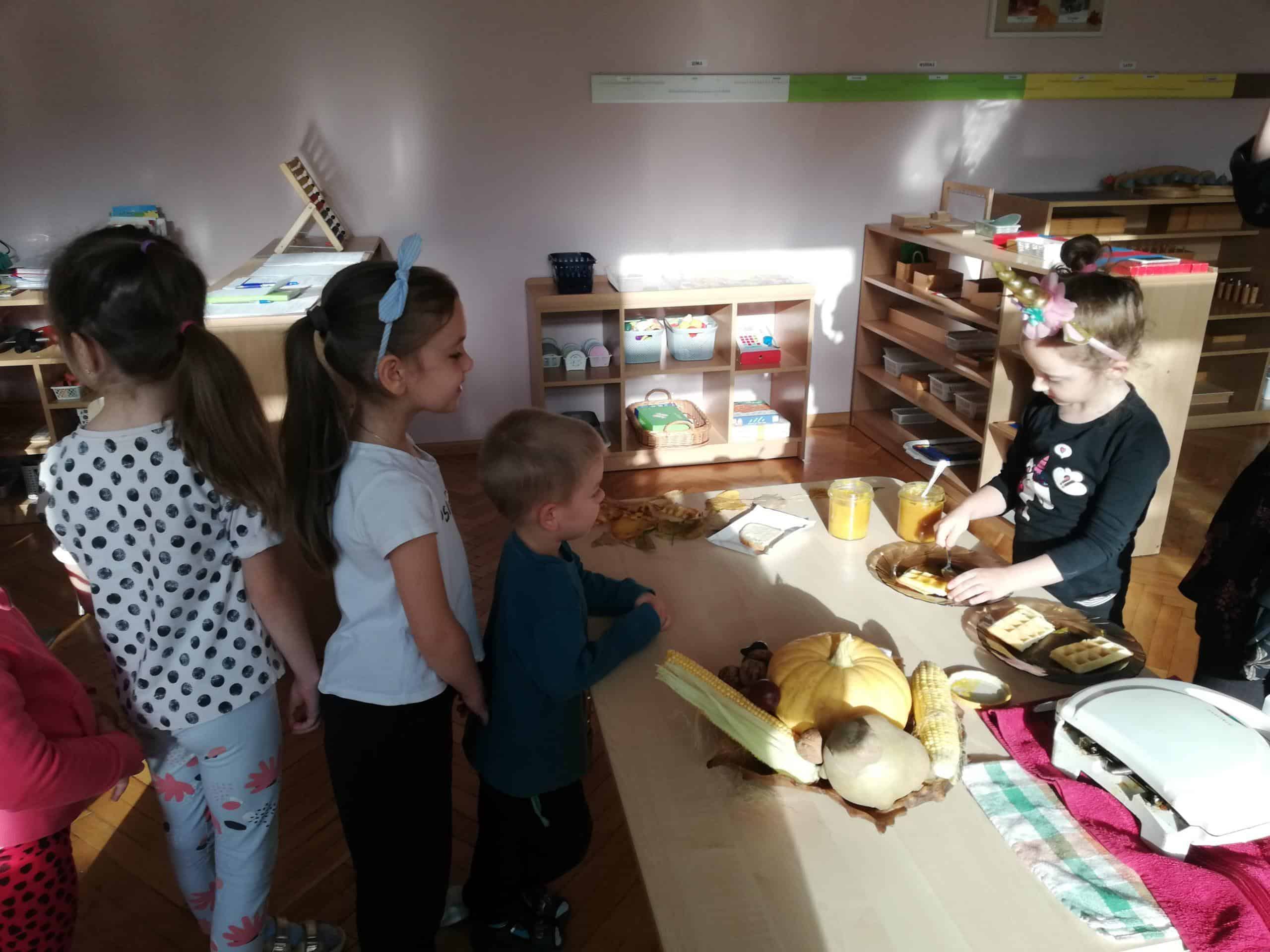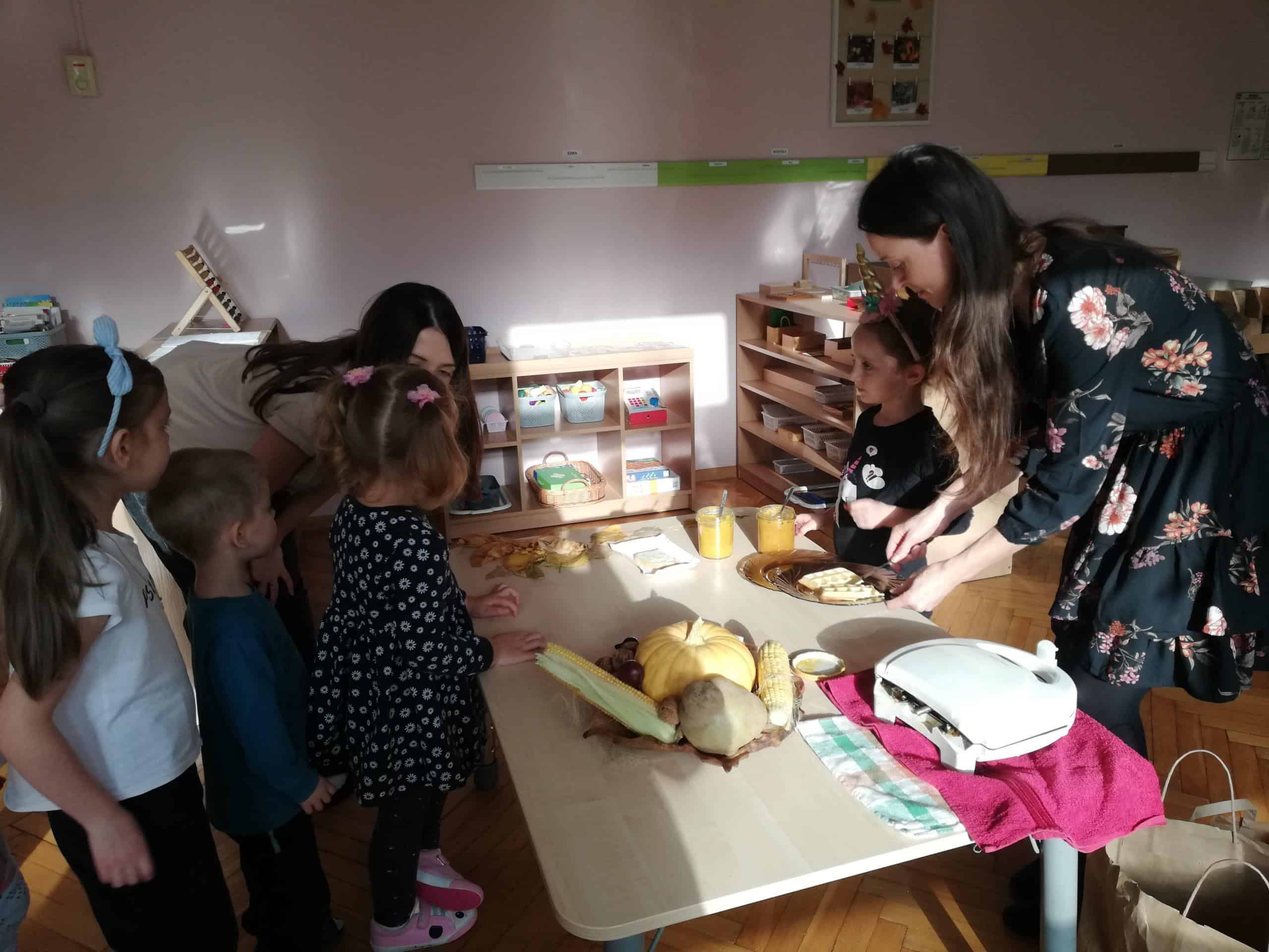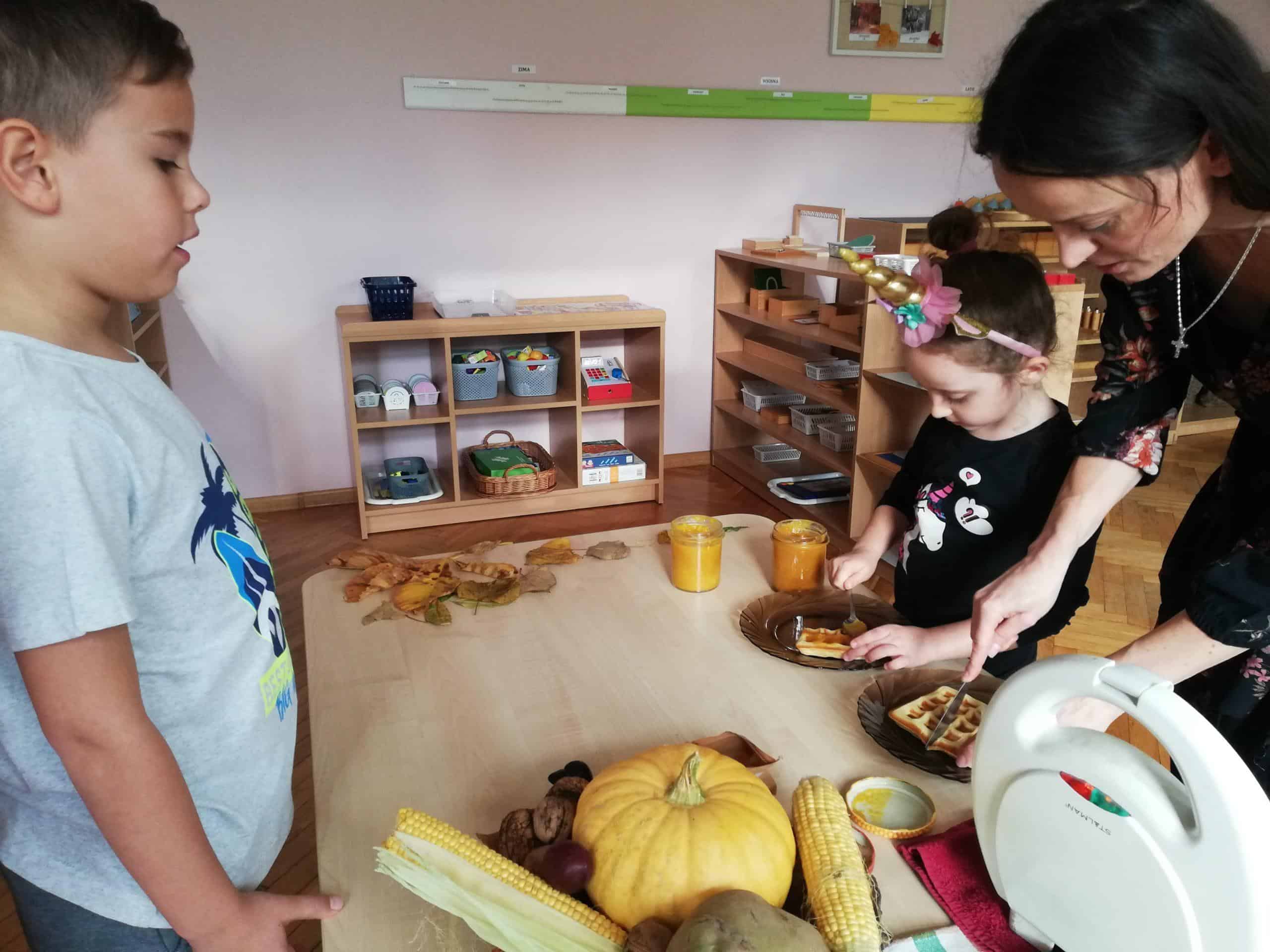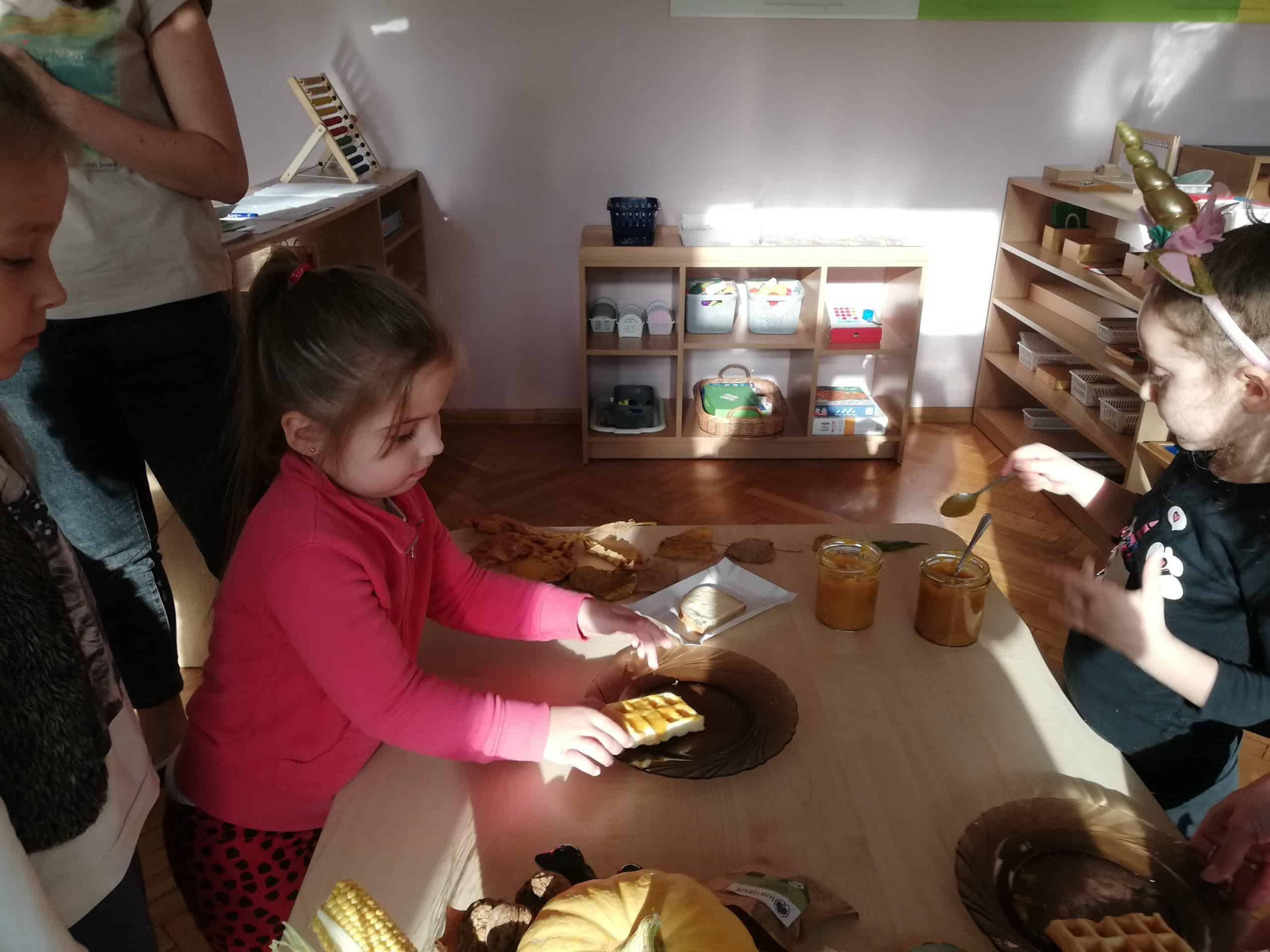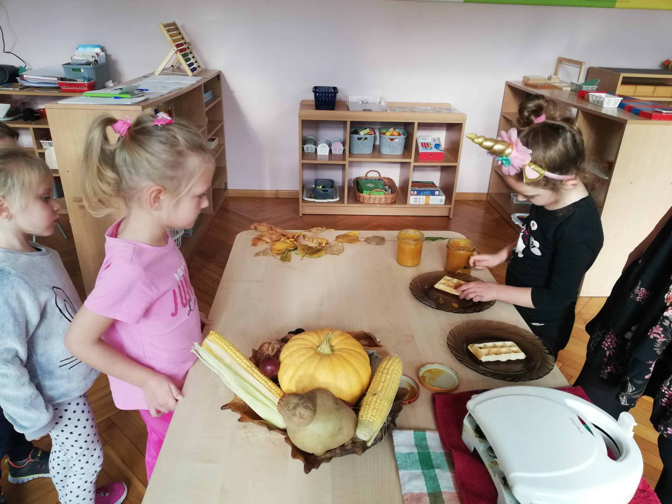 Następnie Pani Madzia pokazała dzieciom swój sposób na wykorzystanie dyni, a były to dyniowe dżemy, które zachwycały nie tylko pięknym żółtym kolorem, ale również wyjątkowo smakowały. Były dwa rodzaje dżemów: