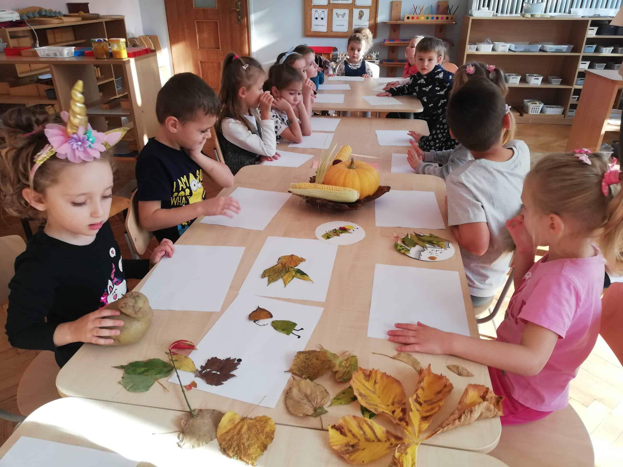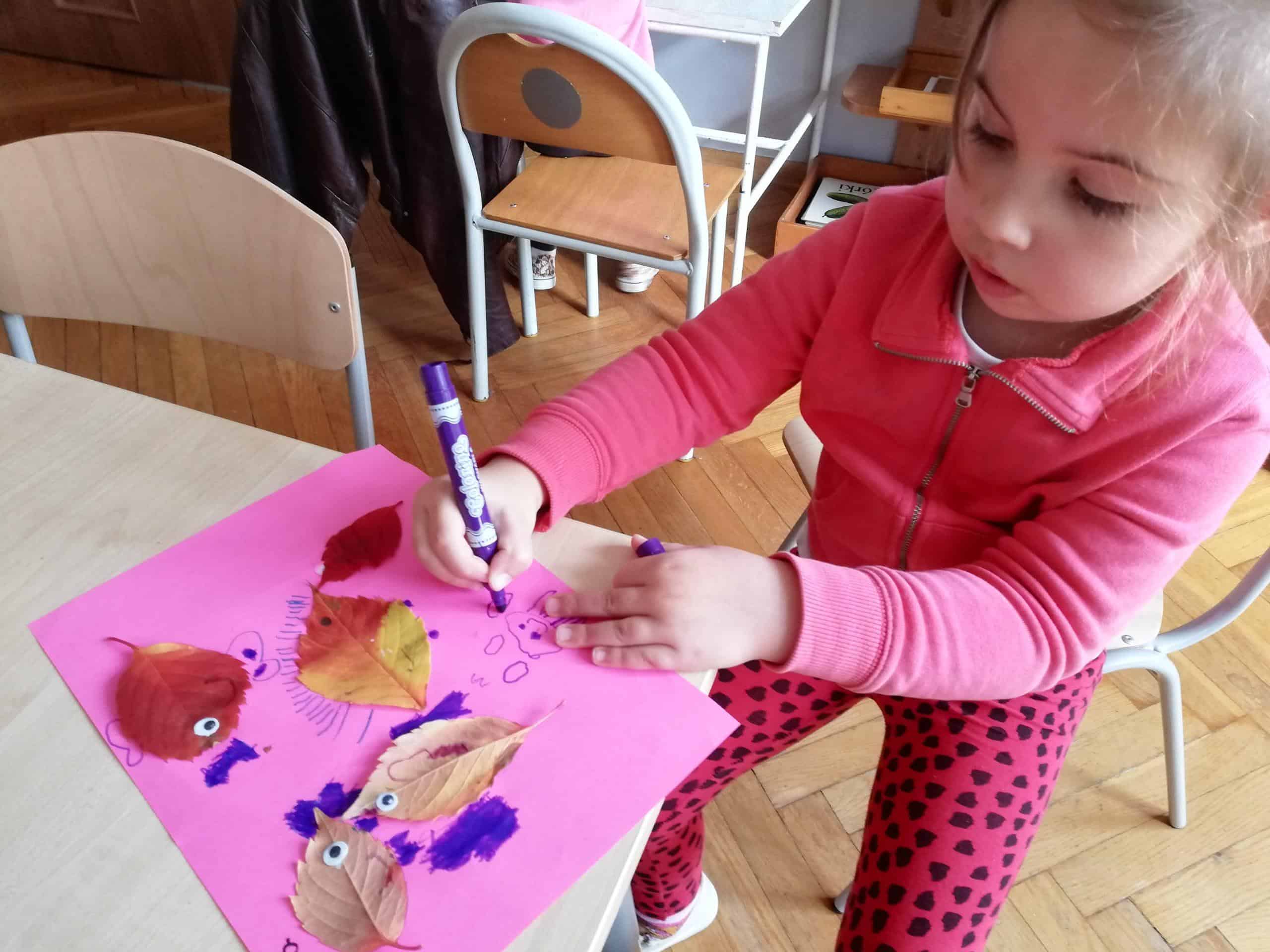 Jesień to osobliwy czas, w którym to nasz ogród przedszkolny nabrał złotych barw. Rok temu o tej porze sadziliśmy cebulki kwiatowe, a tym razem zabraliśmy się do typowo jesiennych prac w ogrodzie. Ale najpierw dzieci dowiedziały się jaki rodzaj prac należy wykonać jesienią: nawożenie roślin , przeniesienie do wnętrza wrażliwych roślin na mróz, dokonanie potrzebnych nasadzeń i przesadzeń, przycięcie roślin, które tego potrzebują. No i oczywiście zbieranie opadniętych liści. W ruch poszły grabki i miotły. Dzieci przystąpiły do działania. Grabienie liści to czynność, która bardzo im się spodobała. Z ochotą przystąpiły do pracy. Nie zapomniały też o potrzebach jeża. Liście zostały zagrabione tak, aby powstał mały kopczyk, w którym to hibernując jeż przetrwa zimę. To była dobra lekcja dbania o najbliższe środowisko przyrodnicze i rozwijania opiekuńczego stosunku do zwierząt.