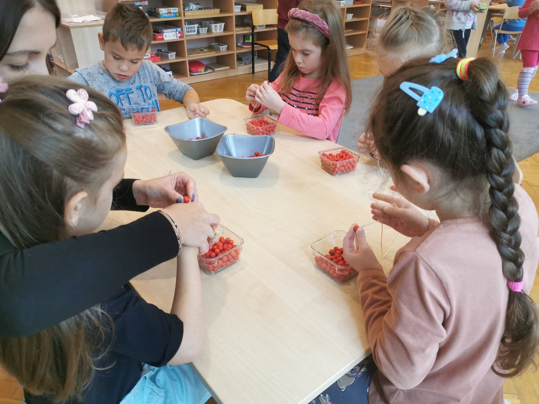 Zadanie bardzo spodobało się starszakom i muszę powiedzieć, że świetnie sobie z nim poradzili. Oswajanie dzieci z przedmiotami codziennego użytku jak np. igła, jest bardzo ważne. Wszystko oczywiście musi odbywać się pod czujnym okiem osoby dorosłej.