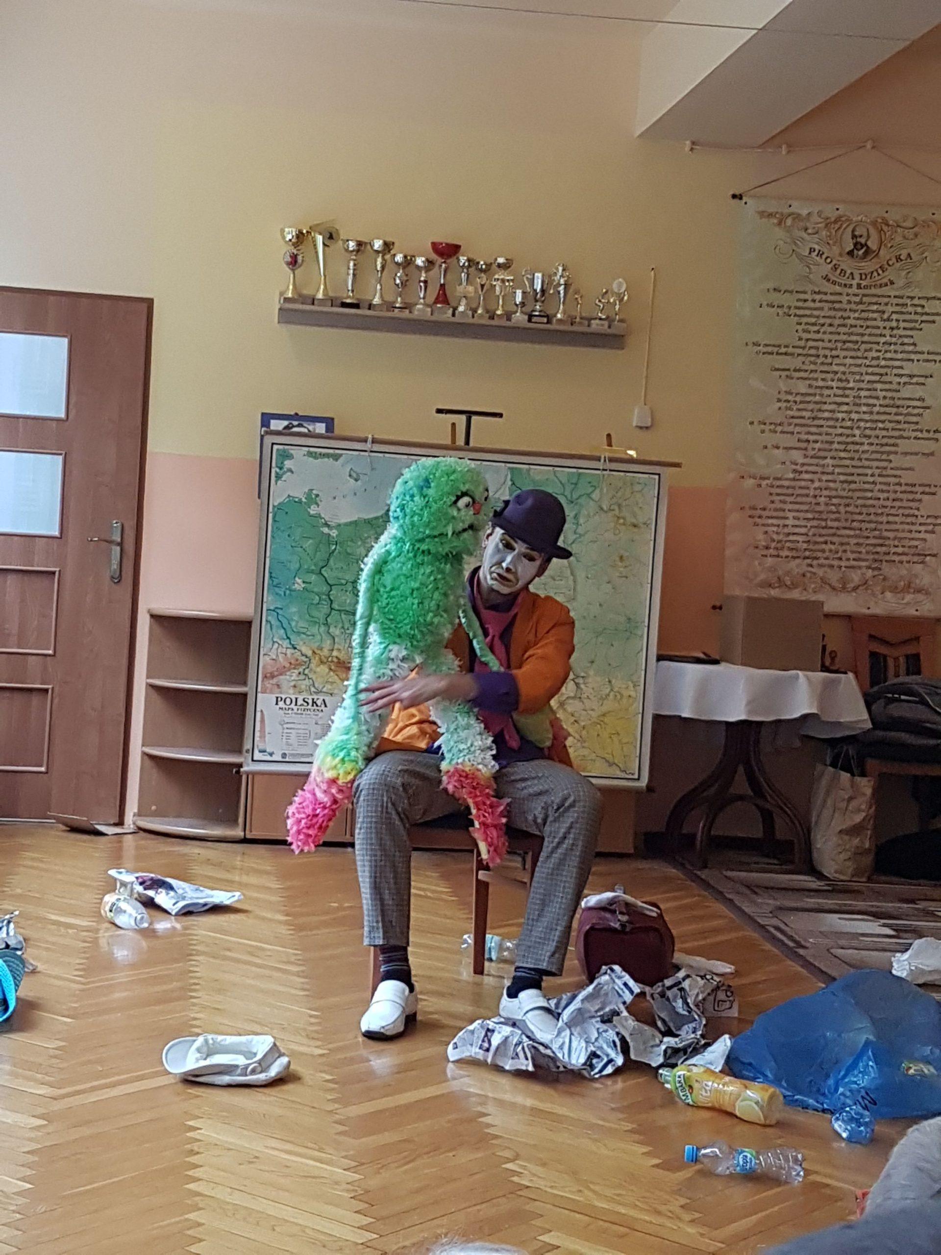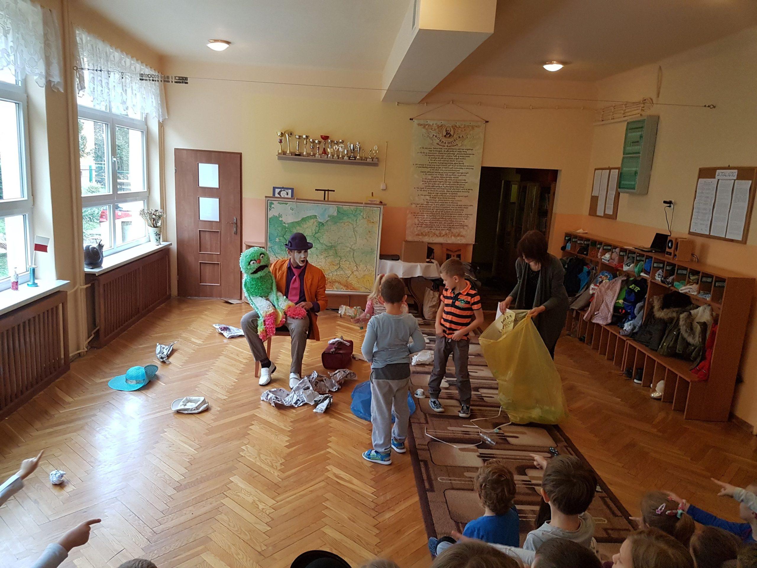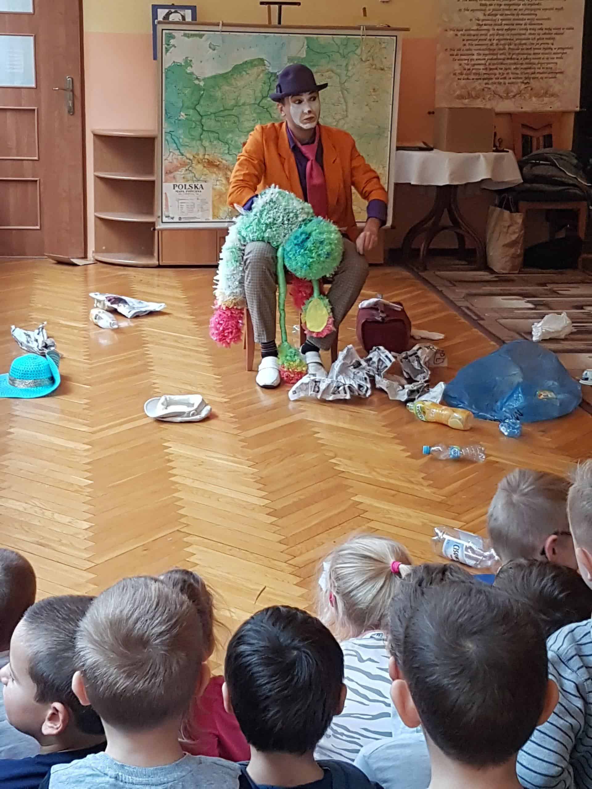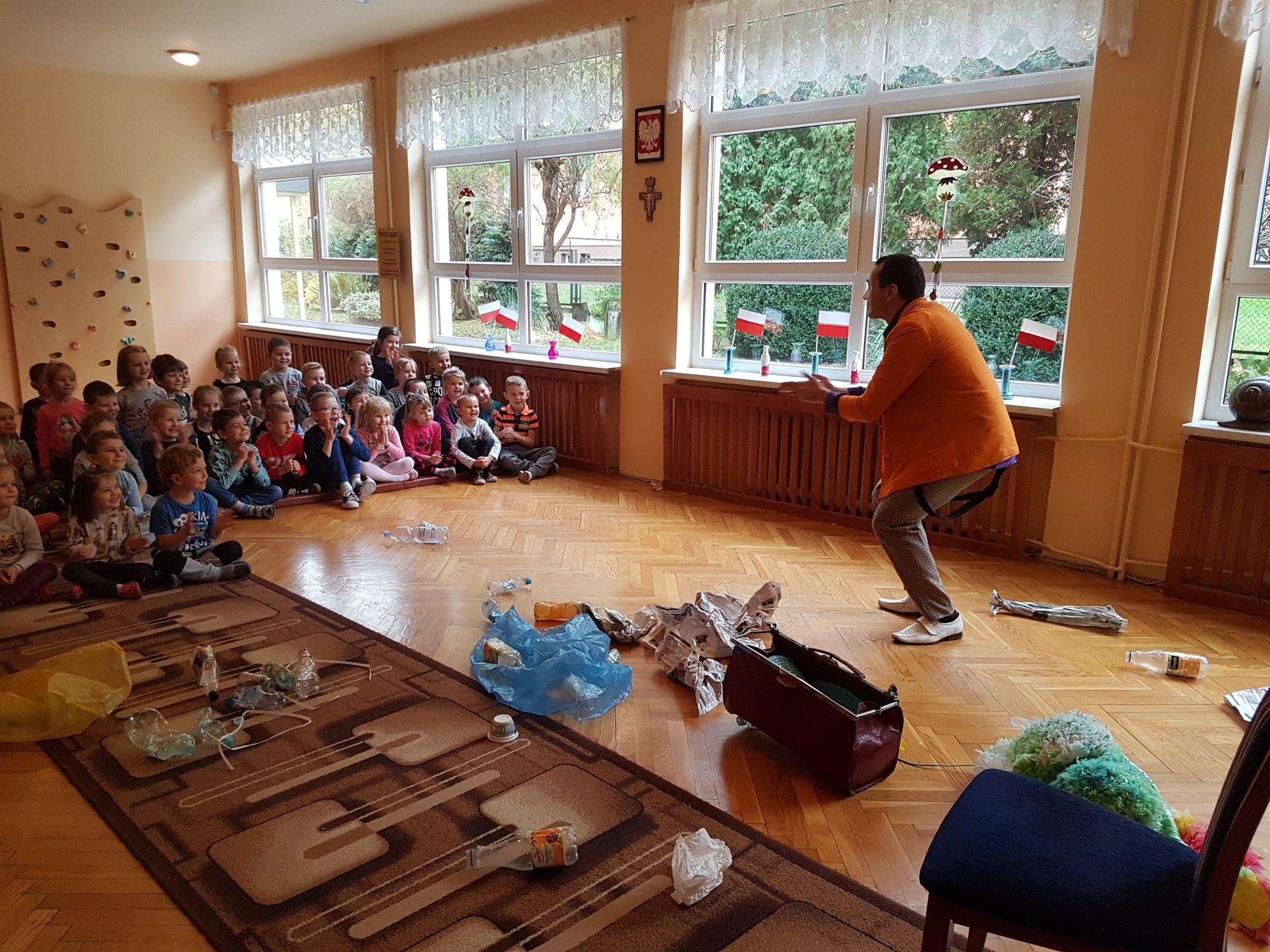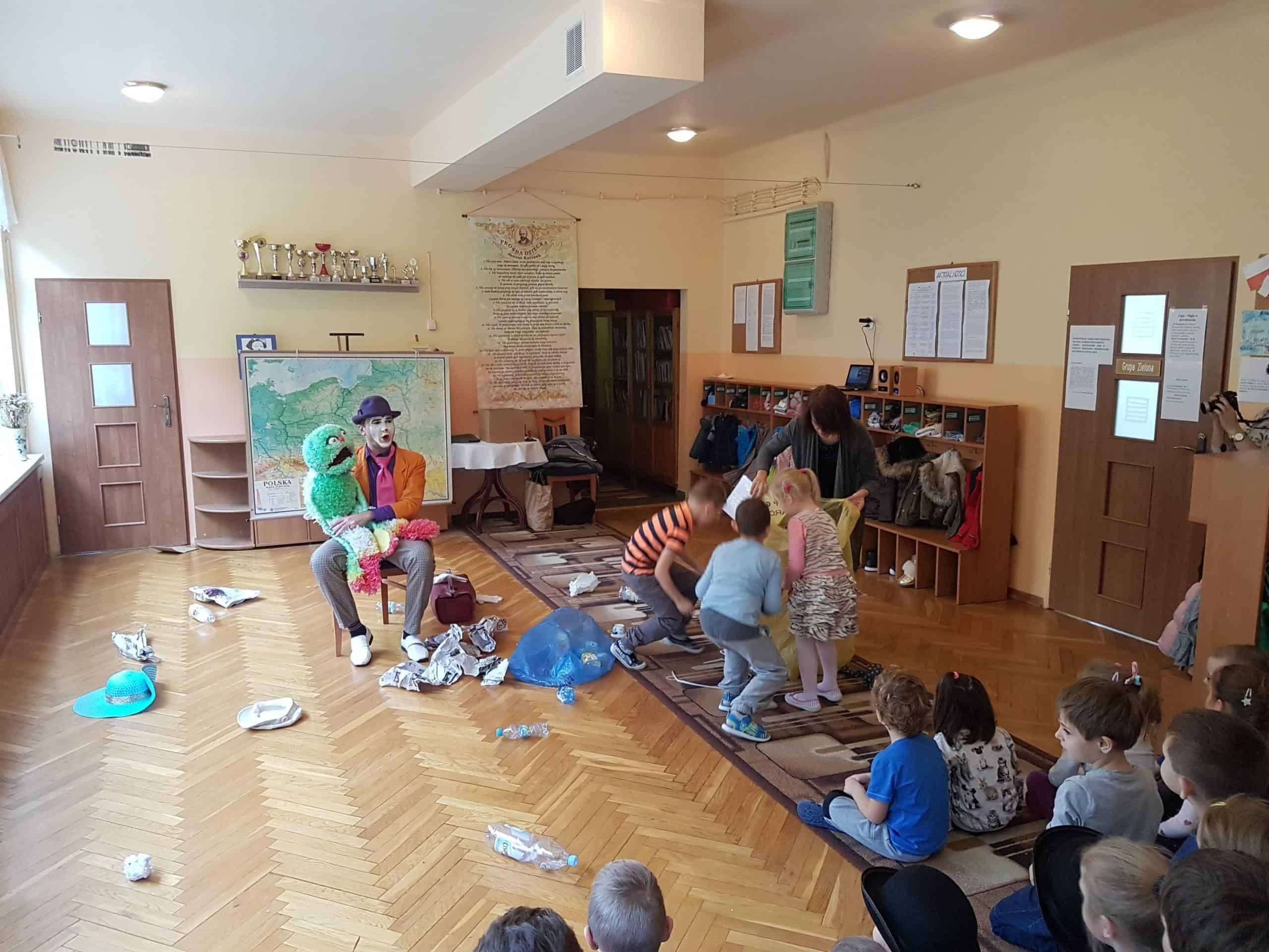 14 listopada gościliśmy w naszym przedszkolu pracowników Miejskiego Ośrodka Kultury w Jarosławiu z przedstawieniem teatralnym o tematyce ekologicznej. Od klauna Pawełka i Zdzicha Śmieciopotwora dzieci dowiedziały się wszystkiego o zasadach segregacji odpadów. Na zakończenie spotkania każdy przedszkolak otrzymał piękną, ciekawą książeczkę „Rady na odpady, czyli jak Jarek uczył sortować śmieci”. Akcja „Czysty Jarosław” została zorganizowana przez Urząd Miasta Jarosławia i Miejski Ośrodek Kultury w Jarosławiu.